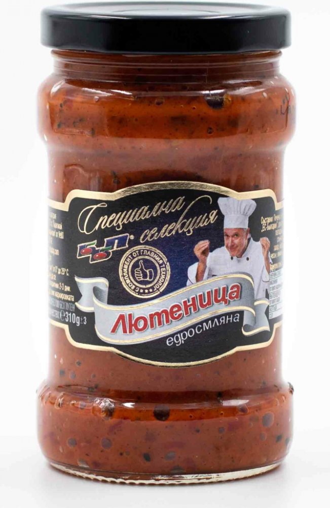 Ljutenica (nebo také lutenica) je tradiční bulharská pochoutka vyrobená z pečených paprik, rajčat, česneku a koření jako je římský kmín (kimion). Tato lahodná pomazánka je zcela bez konzervantů a umělých látek, což z ní činí zdravou a chutnou volbu pro každodenní použití. Její výrazná chuť, která může být jemná i pikantní, si získala oblibu po celém Balkáně. Skvěle se hodí jako příloha ke grilovanému masu, klobásám, nebo jen tak na čerstvý chléb. Výborná je také jako dip, do sendvičů nebo k sýru. Ljutěnica je ideální volbou pro ty, kdo chtějí ochutnat autentickou chuť bulharské kuchyně. Složení: Pečené červené paprika kapie 85% rajčata, lilek, mrkev, česnek, cibule, slunečnicový olej, cukr, jódová sůl, pepř, římský kmín. Nutriční hodnota na 100g produktu: Energetická hodnota - 582kj / 139,16 kcal Tuky - 8,26g - z toho nasycené mastné kyseliny 7,69g Sacharidy - 14,43g - z toho cukry 7,68g Bílkoviny - 1,79g Sůl - 1g Upozornění: Skladujte na suchém místě mimo dosah přímého slunečního záření při pokojové teplotě. Po otevření skladujte v chladničce a spotřebujte do 72 hodin. Datum spotřeby je uveden na obalu.