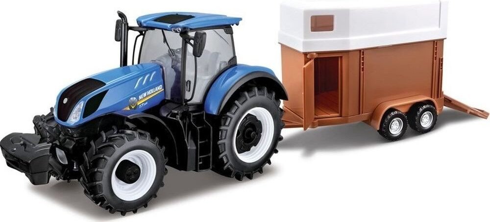 Bburago 1:32 Farm Traktor New Holland s vlečkou pro koně věk: 3+Vnější šířka: 36.5Vnější výška: 12.8vnější hloubka: 10.9POHLAVÍ: klukDistribuce: CZ "Model NEW HOLLAND T7.315 s přívěsem pro koně (18-44069) z kolekce Bburago v měřítku 1:32.Model je vyroben z kovu, s plastovými doplňky.Délka traktoru cca 16 cm.Délka celé sady cca 29 cm.Rozměry balení: rozměry balení: 36,5 x 11 x 13 cm. Bburago 1:32 Z...