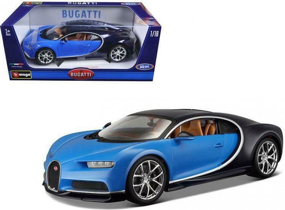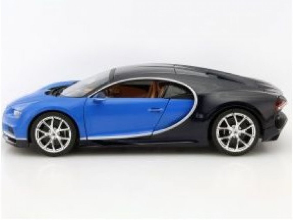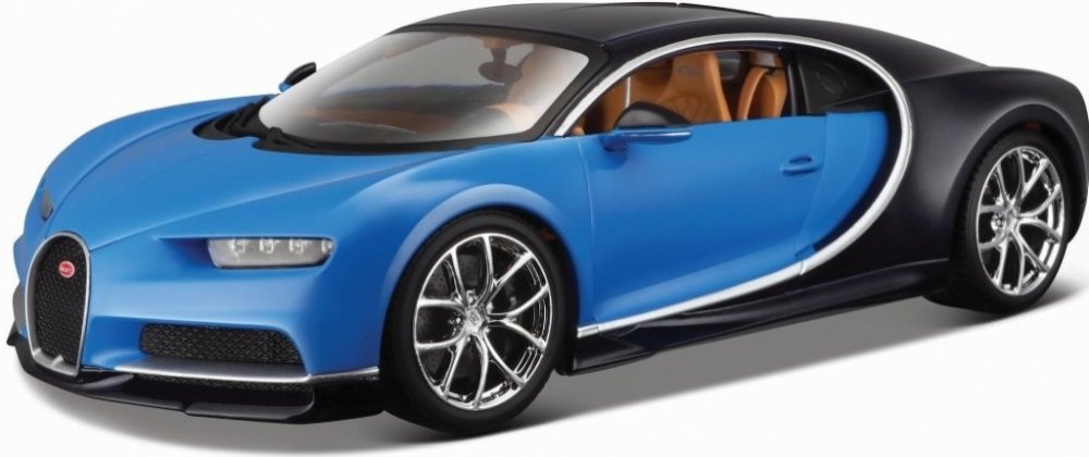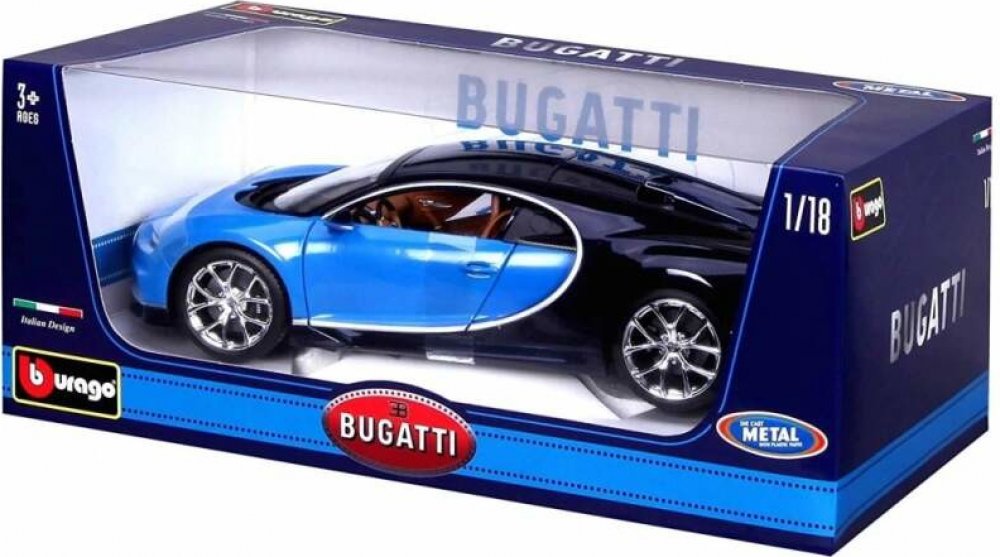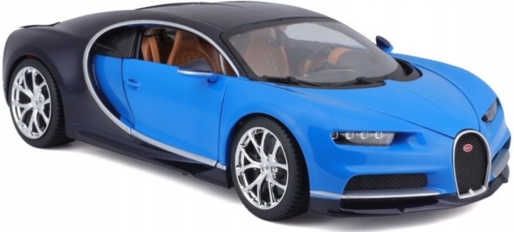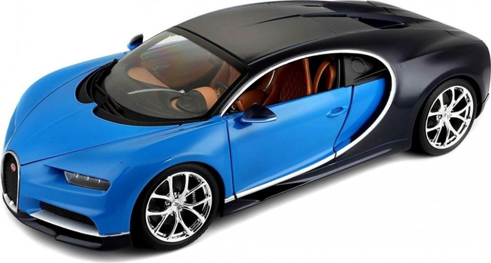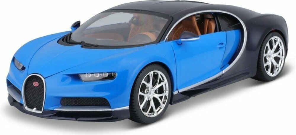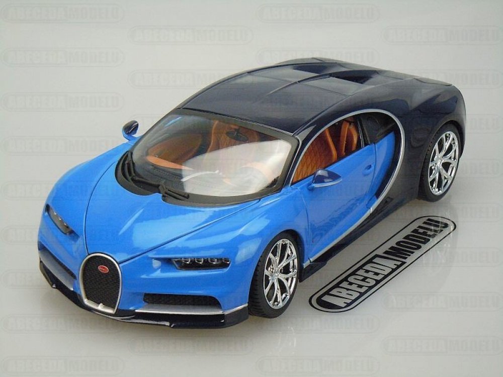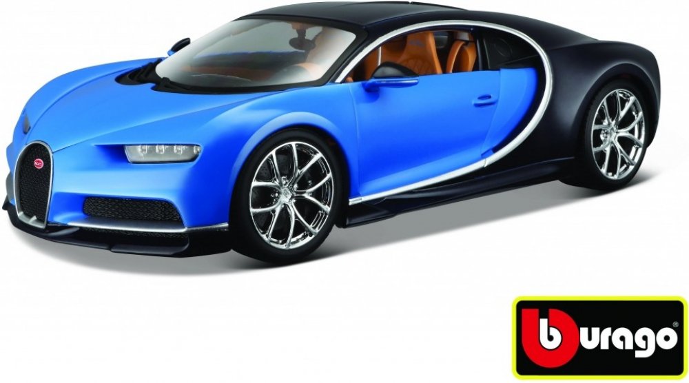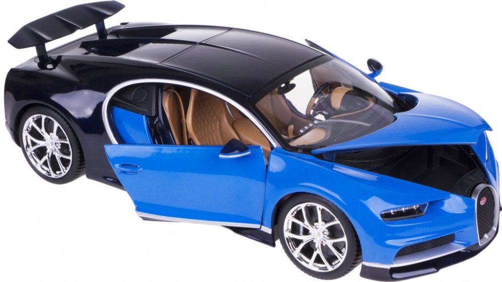 Kovový model auta 1:18 Bburago 18-11040B Plus Bugatti Chiron nejen pro sběratele. Má otevírací dveře a kapotu, otočná kola. Vůz byl představen na 2016 Geneva International Motor Show jako nejsilnější, nejrychlejší, nejluxusnější super-sportovní vůz na světě. Barva modelu je modrá.