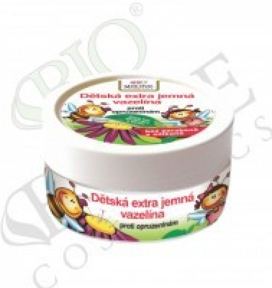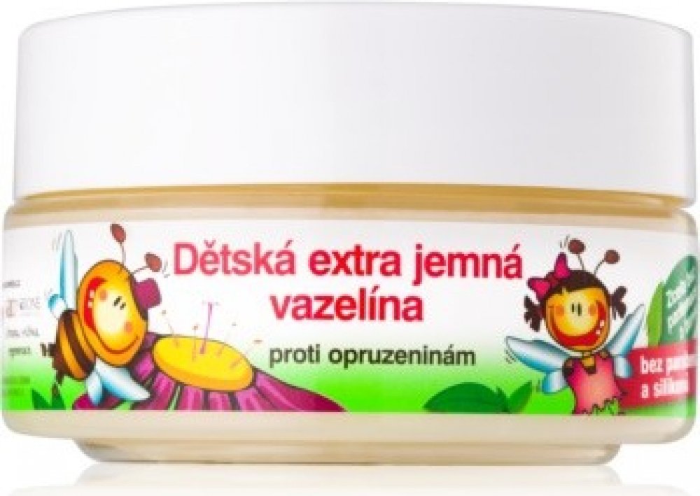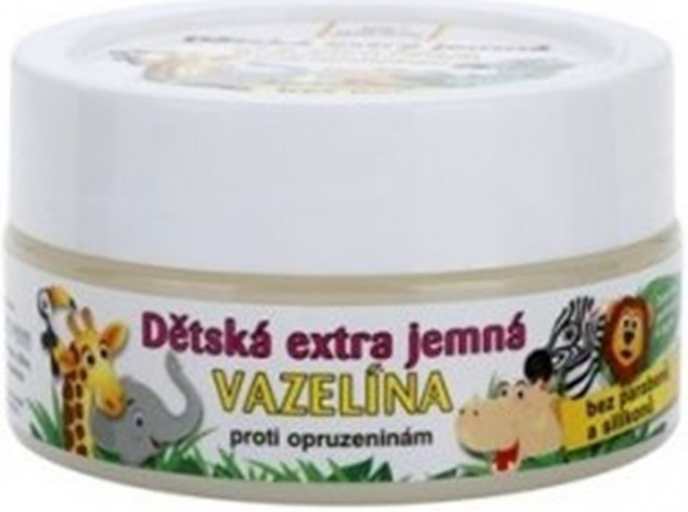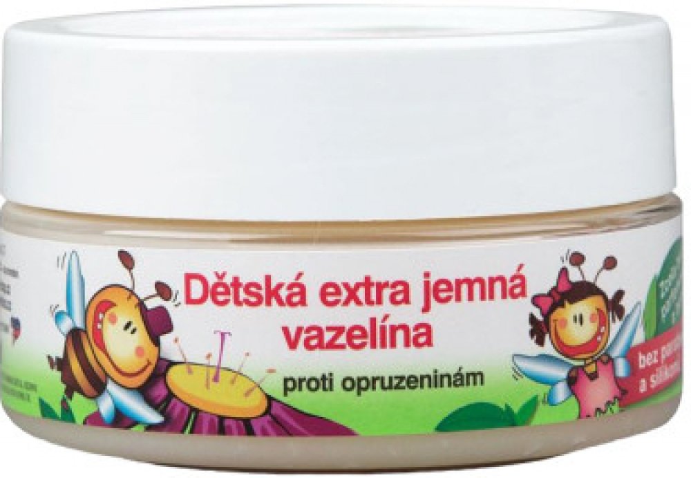 Vazelína je určena jako ochranná a zklidňující péče pro citlivou pokožku dětí, zejména v oblasti, kde hrozí opruzeniny. Aplikuje se lokálně, vytváří ochrannou vrstvu, která zmírňuje pocit podráždění a pomáhá udržet pokožku vláčnou.