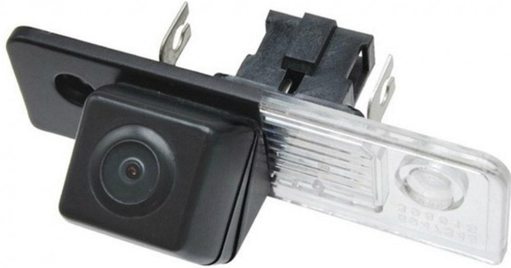 OEM barevná parkovací kamera pro instalaci do lampy pro osvětlení zadní registrační značky. Součástí kamery je místo pro umístění patice se žárovkou z původního světla pro registrační značku.