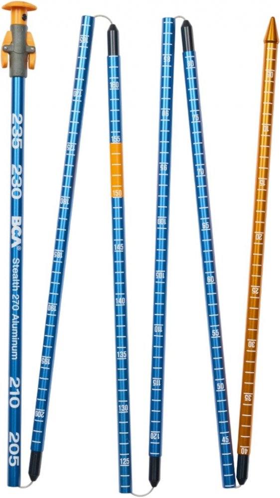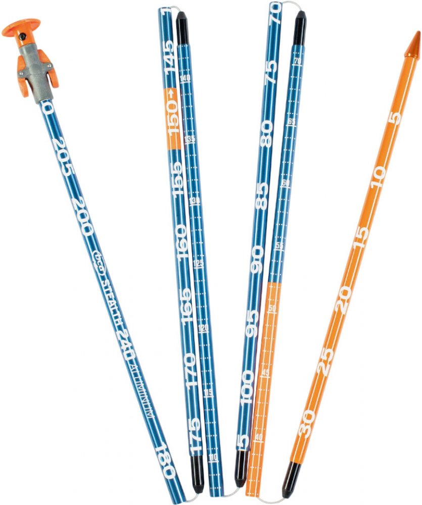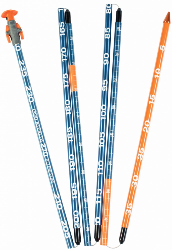 Jednoduchá hliníková sonda Stealth 270 od americké značky Backcountry Access je díky rychlouzamykacímu systému připravena k použití během několika sekund. Stačí ji vyhodit do prostoru, sonda se sama napne, zatáhnete za horní segment a je hotovo. Pokud je sonda ve složeném stavu, horní segment je uschovaný v nejvyšším segmentu hlavní části a nezabírá tak v batohu zbytečně místo. Hrot sondy má ve sr...