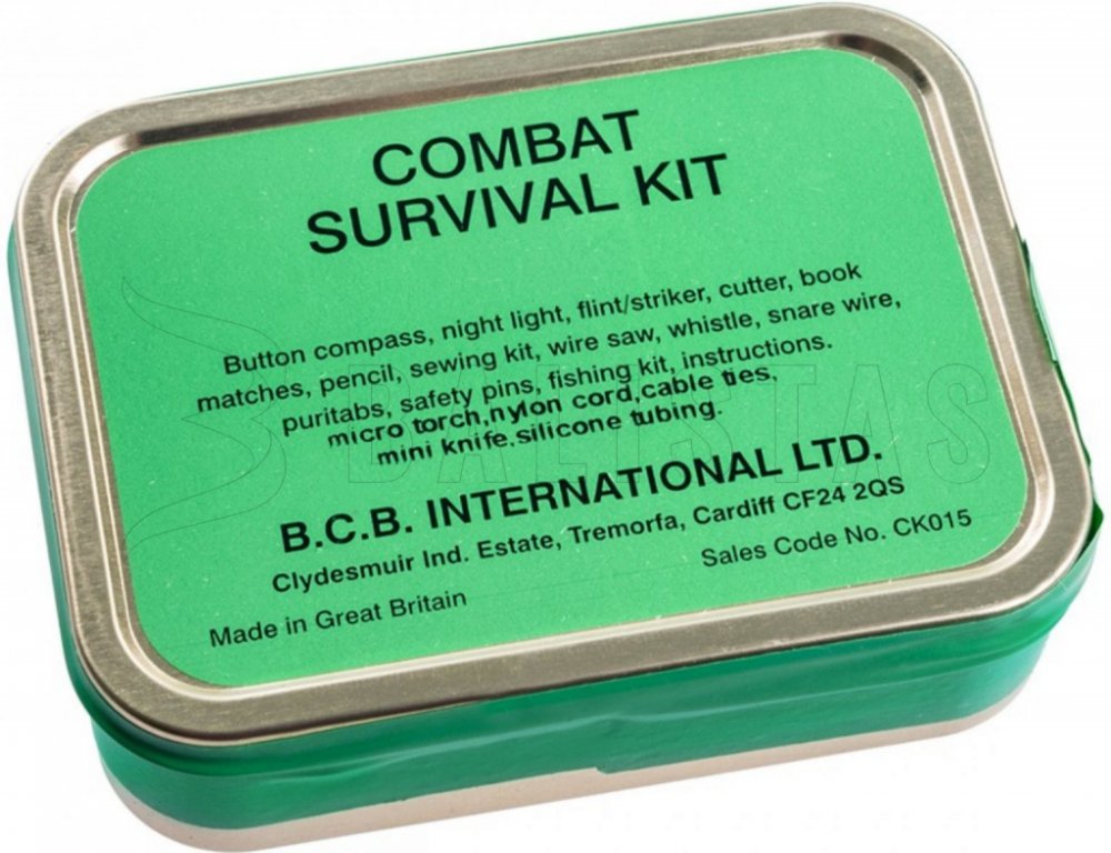 KPZ BCB Combat Survival Tin Další přírůstek do řady sad pro přežití v nouzových podmínkách. Díky gumové pásce po obvodu víčka je krabička nepromokavá a věci jsou uvnitř naskládány tak, aby se nepoškodily při přenášení. Jistě oceníte také znovuuzavíratelnost, jelikož existují sady, které znovuzavíratelné nejsou - ruku na srdce, toto řešení je jistě praktičtější. Co by Vás jistě mohlo zajímat je to, že tato krabička poslední záchrany od společnosti BCB má NSN číslo. V praxi to znamená, že je vedena v seznamu výstroje jednotek NATO = nejspíše se tedy osvědčila v boji. Uvnitř KPZ je návod v anglickém jazyce. hlavní znaky kpz combat survival tin od bcb sada obsahuje: vinylovou pásku malý kompas nůž zápalky tužku tablety na čištění vody drát s očkem svíčku podpalovač soupravu na rybaření píšťalku sadu šití připínáčky drátovou pilu instrukce v anglickém jazyce voděodolná NSN - Nato Stock Number - 8456-99-126-6980 rozměry: 11 x 8 x 2,8 cm hmotnost: 195 g