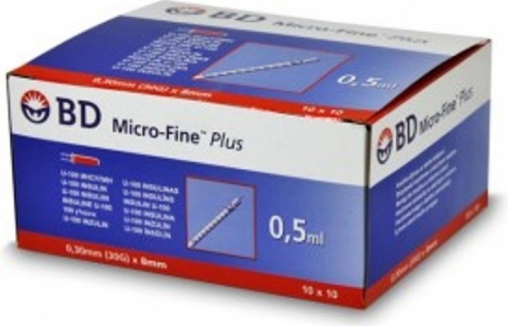 BECTON DICKINSON Inzulin.stříkačky BD 0.5mlx8mm U-100 100ks - Inzulínové stříkačky k jednorázovému použití pro aplikaci inzulinu s integrovanou jehlou. Každá značka na stupnici zobrazuje 1-2 jednotky. Jehla seříznutá ve třech rovinách byla speciálně vyvinuta ke snížení síly průniku potřebného k propíchnutí kůže.