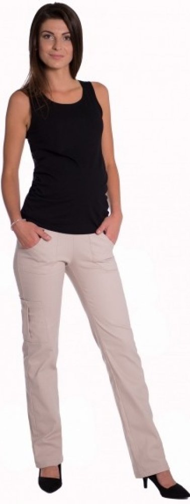 Be MaaMaa bavlněné těhotenské kalhoty s kapsami béžové