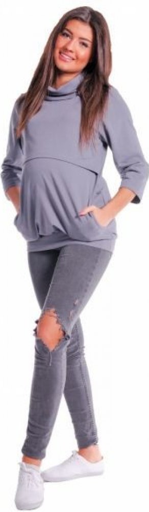 Be MaaMaa těhotenské a kojící teplákové triko metalická šeď