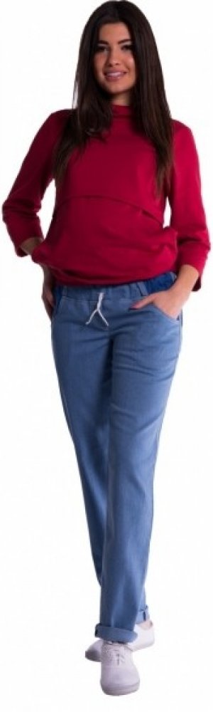 Be MaaMaa těhotenské kalhoty letní bez břišního pásu světlý jeans
