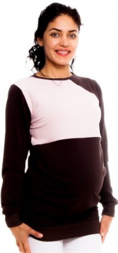 Be MaaMaa těhotenské kojící tričko mikina Laverna hnědá sv. růžová