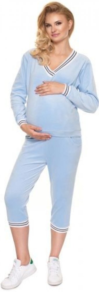 Be MaaMaa těhotenské kojící velurové pyžamo 3/4 modré