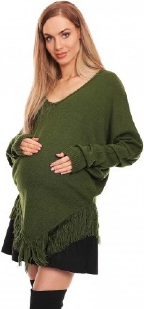 Be MaaMaa těhotenské pončo dlouhý rukáv khaki