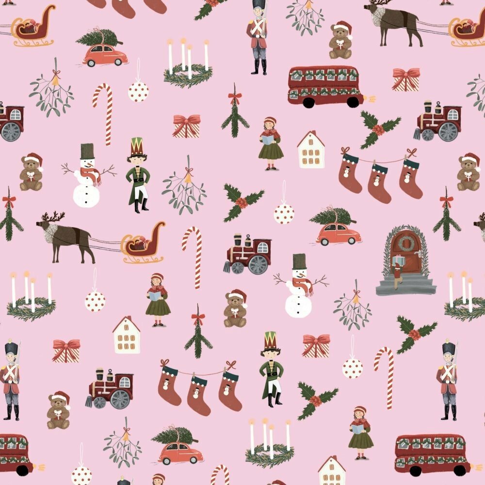 Be Nice EKO vánoční balicí papír Anglická pohádka 3 ks, růžový