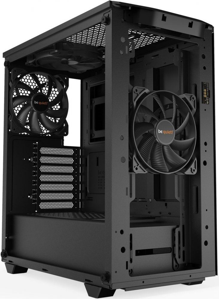 Skříň formátu ATX nabízí dvě 3,5" pozice pro pevné disky a pět 2,5" pozic pro SSD disky. Skříň je osazena dvěma ventilátory Pure Wings 2 o velikosti 140 mm. Důmyslné řešení umožňuje pohodlné umístění až 360 mm dlouhého výměníku vodního chlazení na přední straně. Ve skříni je dostatek prostoru pro chladič CPU do výšky až 190 mm a grafickou kartu o délce až 369 mm. Na ...