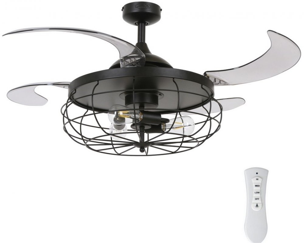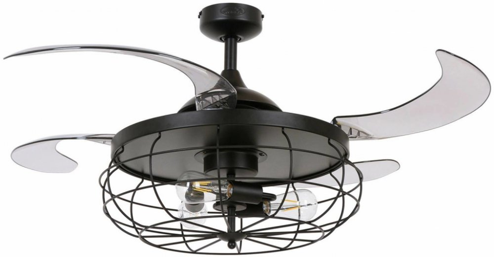 Lopatky osvětleného stropního ventilátoru Fanaway Industri lze v případě potřeby sklopit, takže zůstane viditelné pouze běžné stropní svítidlo se třemi dekorativními rustikálními žárovkami ST64 v žárovkovém vzhledu. - Dodává se s rádiovým dálkovým ovládáním - Nastavitelná letní a zimní funkce (vpřed a vzad) - Otáčky: 130/175/230 ot/min - Příkon ventilátoru při maximálních otáčkách: 60 W - Cirkulace vzduchu: max. 180 m³/min - Žárovky v balení: 3 x 4 W LED, 380 lm, 2 500 K - Vhodné pro 3 x žárovky E27, max. 25 W každá