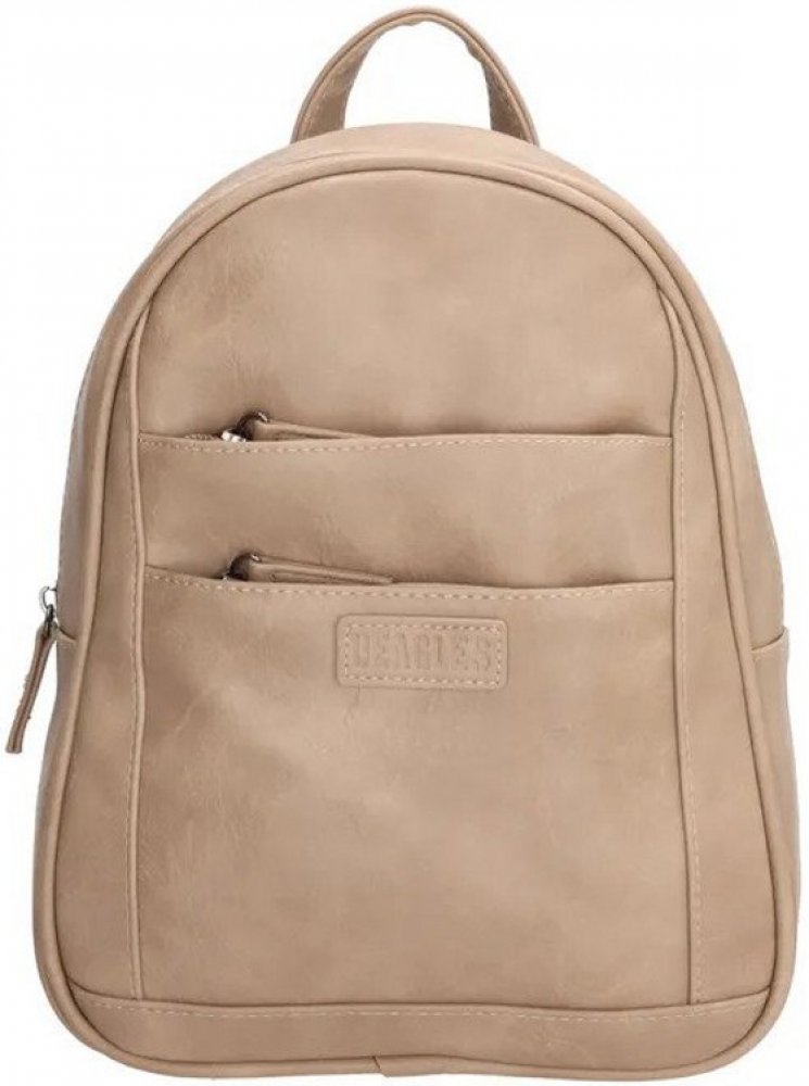 Béžový kožený batoh "Trouble" se zavíráním na zip, kapsy na přední a zadní straně, nastavitelné popruhy, rukojeť + 2 dárky a poštovné ZDARMA!