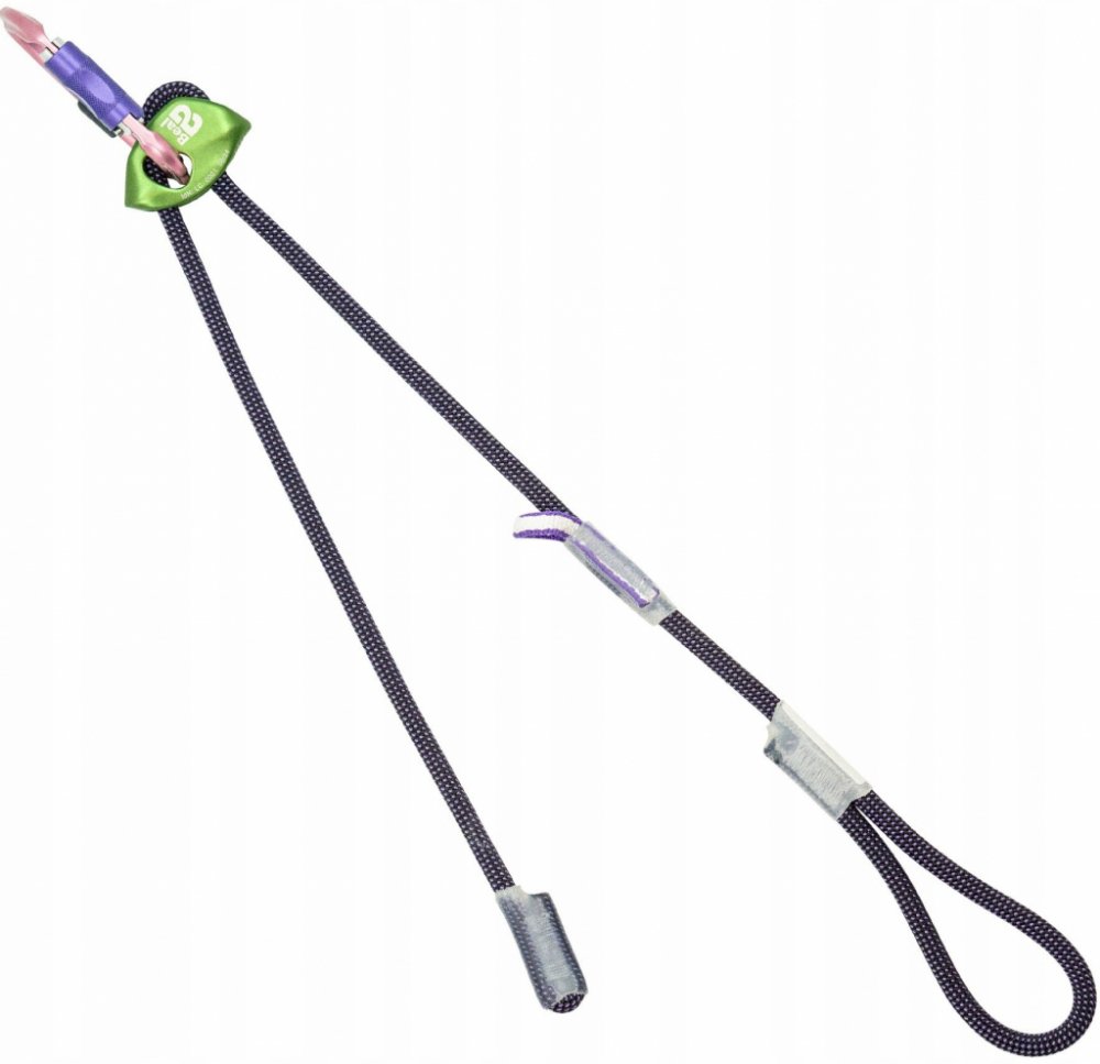 Dynamický polohovací odsedávací lanyard s šitým dyneema okem pro jednoduché metodické slanění.