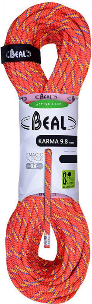 Lano s průměrem 9,8mm ideální pro začínající i velmi zkušené lezce. Certifikaci má pouze jako jednoduché lano. Tato tloušťka je výborným kompromisem mezi objemem lana a jeho dobrou manipulovatelností. Lano Karma je z řady Active Line, vhodné pro sportovní lezení. Toto základní lano se používá i při trénování těžkých cest, kde lano dostává zabrat a životnost je pak přibližně stejná jako u mnohem dražšího lana s impregnací.