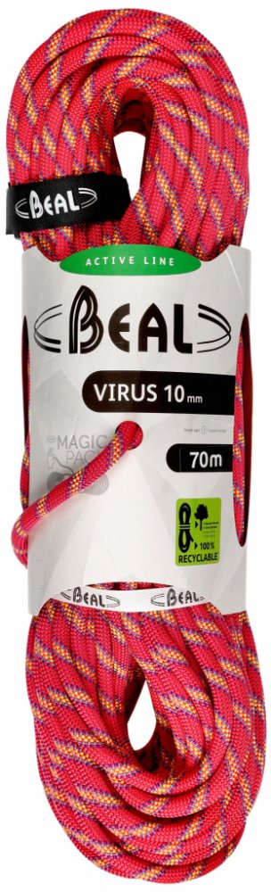 Univerzální lano pro široké spektrum uživatelů o průměru 10mm. Certifikaci má pouze jako jednoduché lano. Určené pro příležitostné, ale i výkonnostní lezce. Díky svému průměru je vhodné pro většinu typů jistítek. Virus 10mm patří do základní skupiny Active Line, která nabízí dokonale vyvážený poměr cena/výkon.