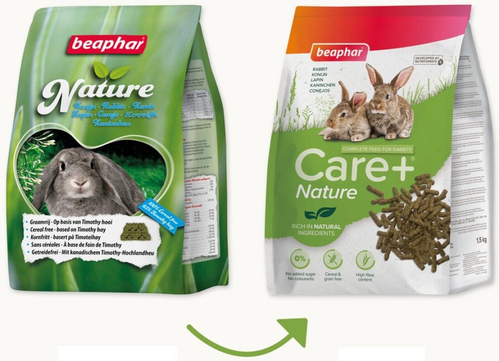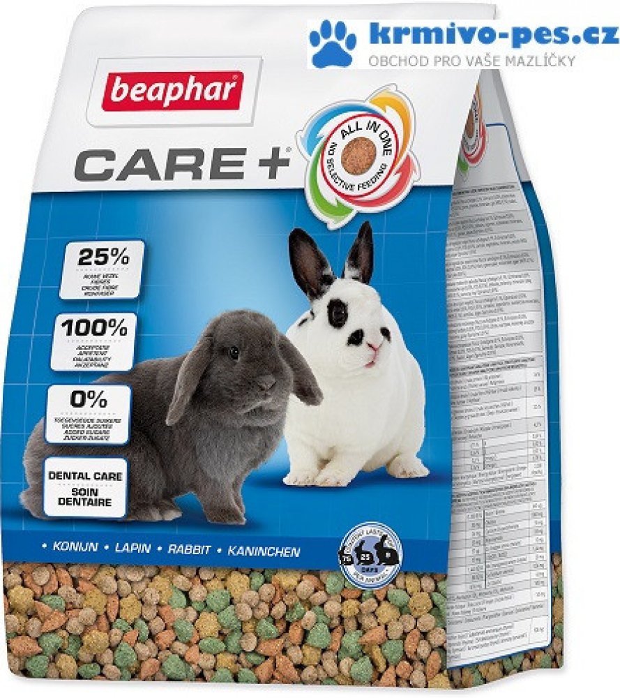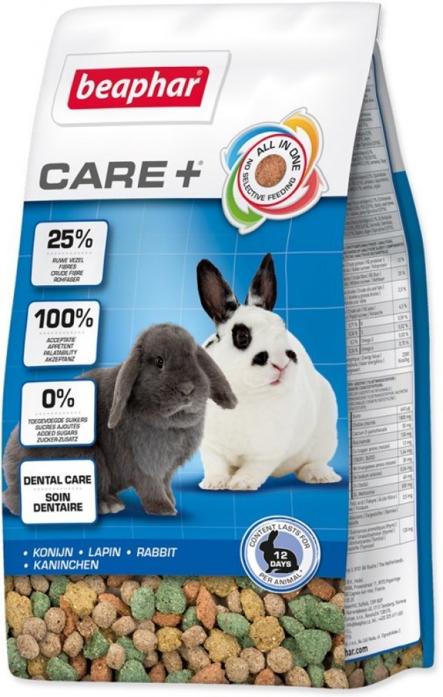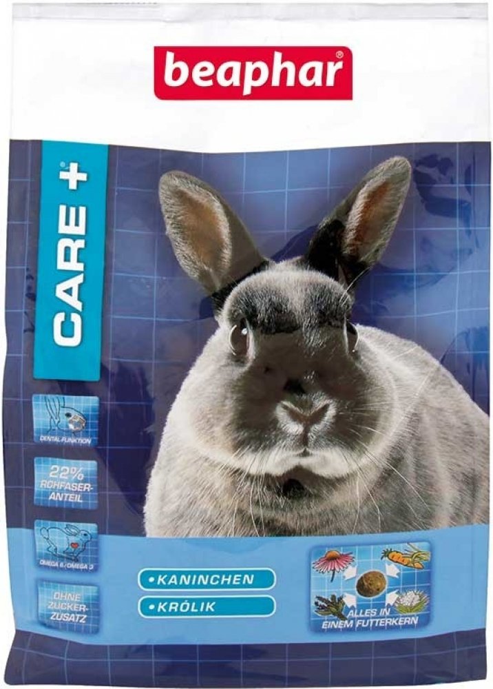 Krmný návod: protože je krmivo velice chutné, Váš králík jej bude opravdu milovat. Přesto je nutné přecházet na nové krmivo postupně. Proto v prvních dnech smíchejte Care+ se starým krmivem, dávku postupně zvyšujte, až zcela přejdete na nové krmivo. Doporučená dávka pro zakrslého králíka je cca 60 g, pro králíky Dutch Lop-ear cca 85 g, pro králíky Rex cca 115 g, pro králíky French Lop-ear, Flemish Giant a Belgian Hare 170-450 g, pro králíky English Giant 340-450 g na den. Tato dávka může být rozdělena na dvě menší jídla (ráno a večer).