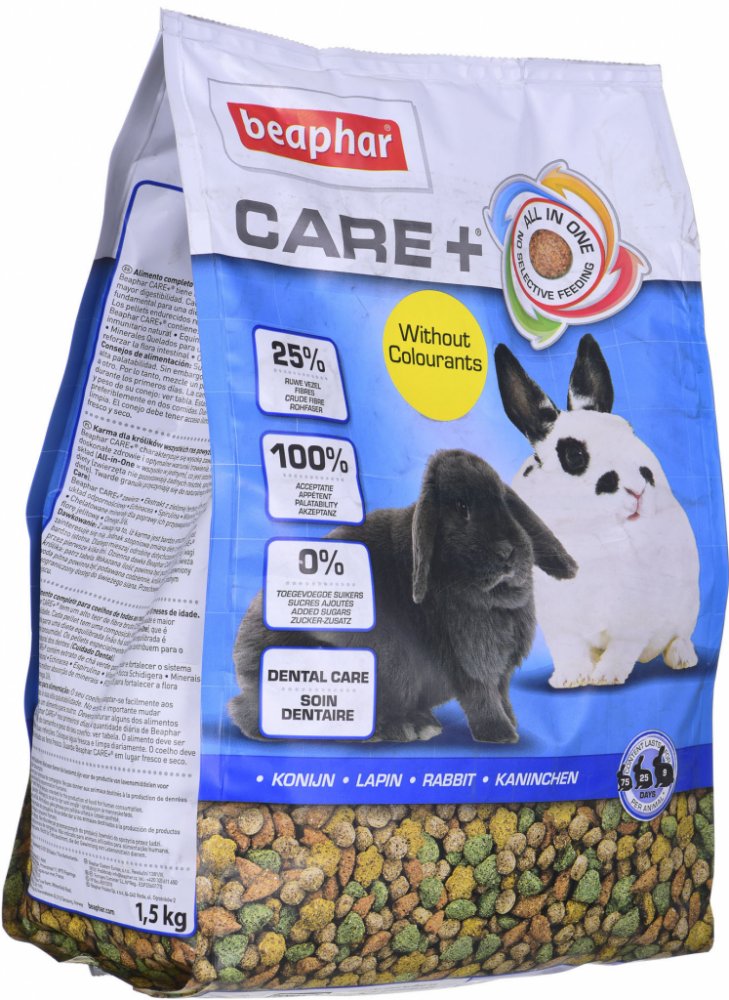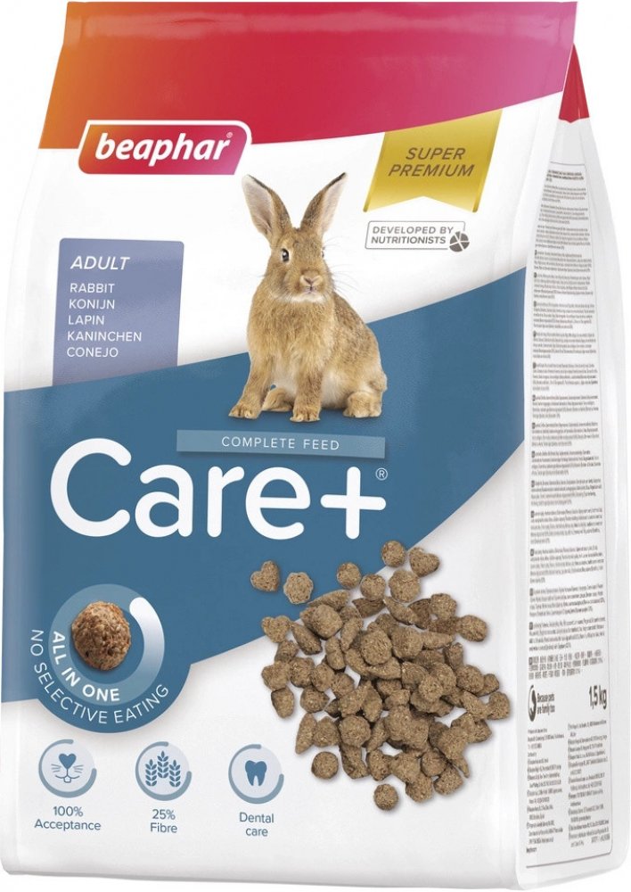 Care+ Rabbit je velice chutné super prémiové krmivo, které bylo vyvinuto ve spolupráci s chovateli, veterináři a odborníky na výživu. Je to 100% extrudované krmivo, tedy každá peleta má stejné složení (vše v jednom). Díky tomu máte jistotu že Váš králík má vše co potřebuje, protože je eliminován možnost vybírání částí potravy.