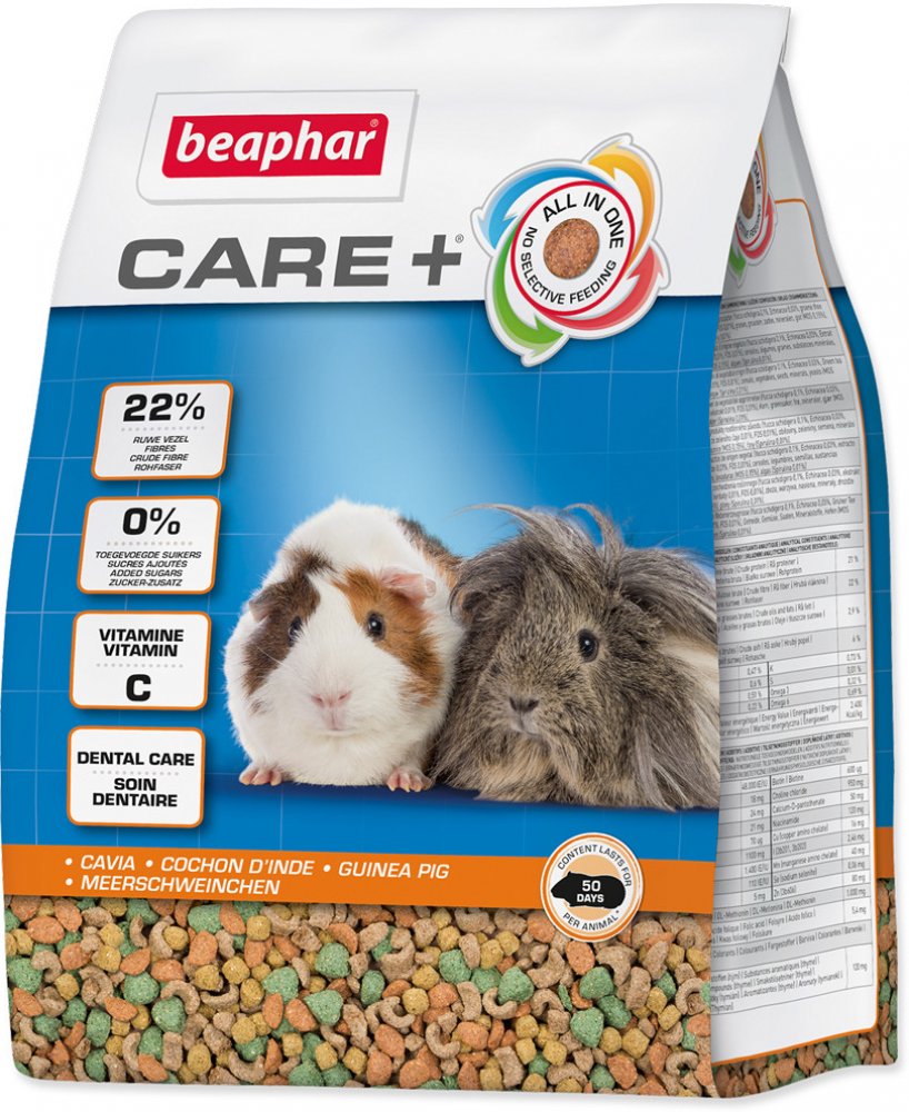 Care+ Guinea pigs je velice chutné super prémiové krmivo, které bylo vyvinuto ve spolupráci s chovateli, veterináři a odborníky na výživu. Je to 100% extrudované krmivo, tedy každá peleta má stejné složení (vše v jednom). Díky tomu máte jistotu že Vaše morče má vše co potřebuje, protože je eliminována možnost vybírání částí potravy.