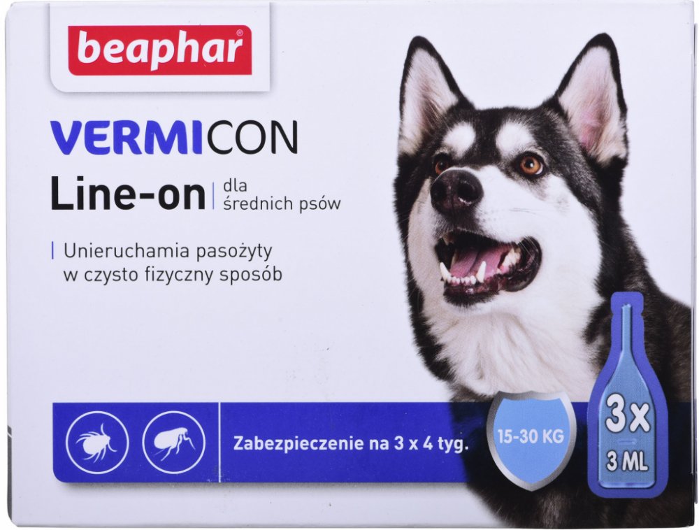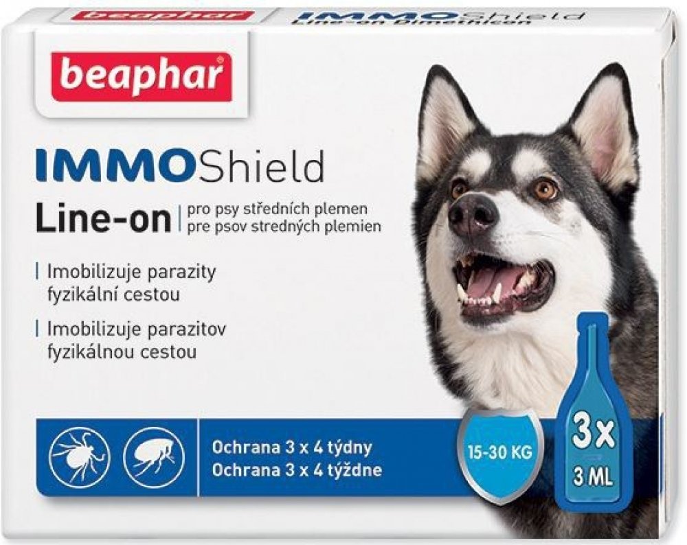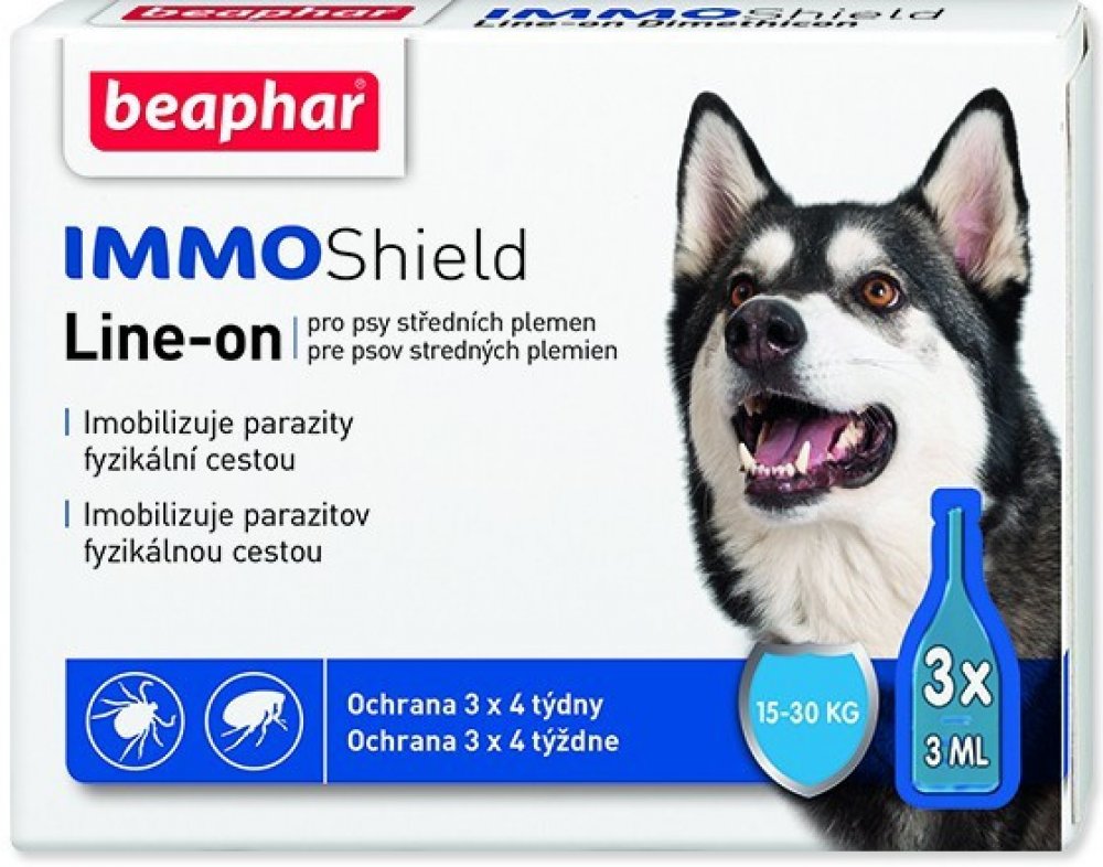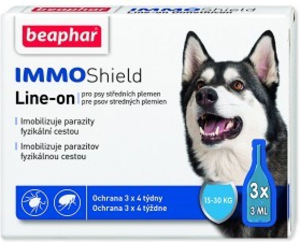 BEAPHAR Line-on IMMO Shield pro psy M - Line-on IMMO Shield pes M 3x3ml - Roztok v pipetách, který imobilizuje parazity fyzikální cestou.