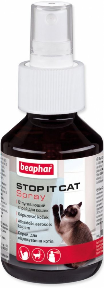 Stop It Cat je speciálně vyvinutý interiérový sprej, který udrží kočky z dosahu míst, kde je jejich přítomnost nežádoucí. Vůně spreje je kočkám nepříjemná, a tak se k ošetřeným místům nepřibližují.