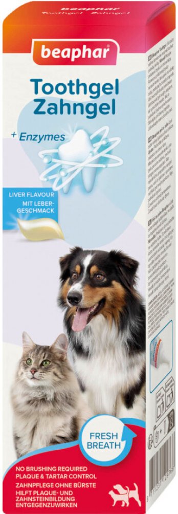 Beaphar Zubní gel s játrovou příchutí zajišťuje každodenní ochranu zubů Vašeho psa. Gel působí proti zubnímu plaku a předchází vzniku zubního kamene. Výsledkem jsou zdravé zuby a svěží dech Vašeho psa. Zubní gel obsahuje 3 enzymy (proteázu, amyloglukosidázu, glokózooxidázu).