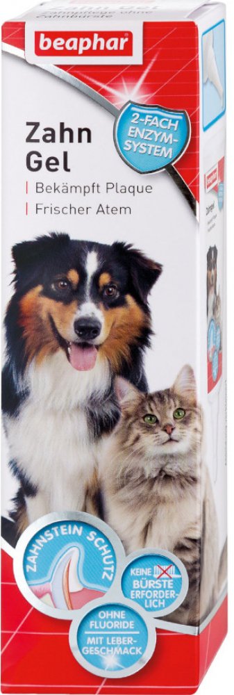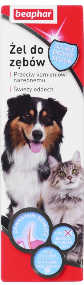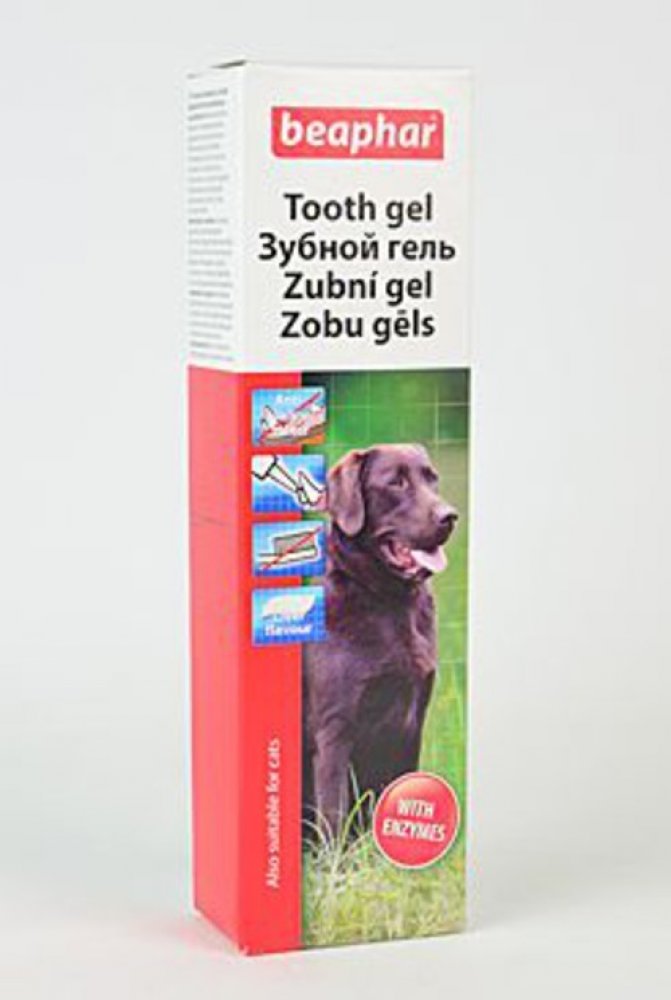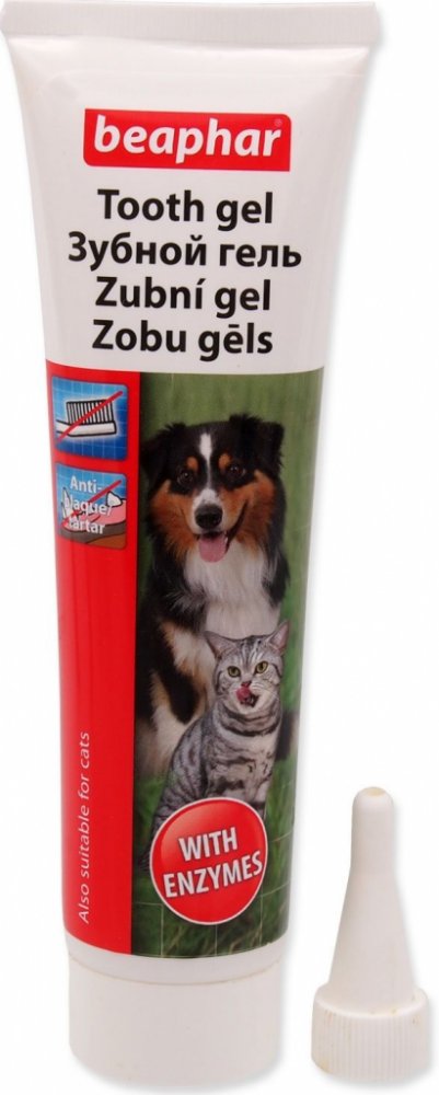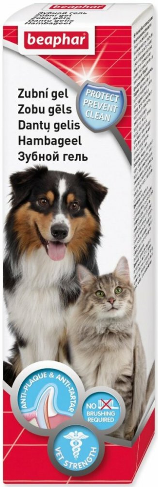 Různé druhy bakterií a proteinů obsažených v krmivu způsobují plak na zubech psa.Beaphar Zubní gel obsahuje enzymy, jež bojují se škodlivými bakteriemi a zabraňují tak vzniku zubního kamene.