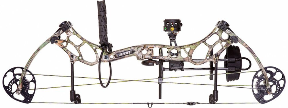 Kladkový luk Bear Threat RTH set. To je prostě nenáročný pracant za super cenu. Příjemně nastavitelný luk ve dvou "silových" verzích. A to 50 - 60 liber nebo 60 - 70 liber. RTH set obsahuje: mířidla Trophy Ridge 4 pin, zakládku Whisker Biscuit, stabilizer Trophy Ridge s poutkem, držák pro 5 šípů, průhled tětivy a D-loop.