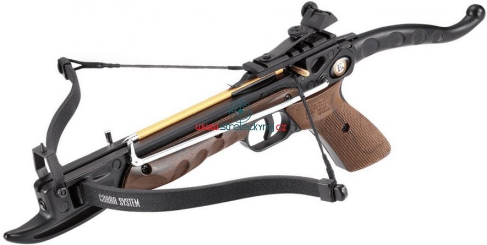 Kuše pistolová Beast Hunter Cobra Aluminium black 80lbPistolová kuše Cobra Aluminium je vhodná pro rekreační střelbu na terč ve vzdálenosti 10 - 15 m. Pozor nejde o hračku!Lučiště pistolové kuše Cobra s napínací silou 80 LB dokáže předat šípu počáteční rychlost až 175 FPS.Samotné tělo, rám kuše je vyrobený ze slitiny kovu. Následně je rám doplněný o plastové střenky rukojeti a předpažbí v černé barvě.Natažení pistolové kuše Beast Hunter Cobra Aluminium black se provádí za pomocí páky. Tento systém má vlastní označení Cobra System. Kuši uchopíte za výčnělek v přední části a za pomocí součastného pohybu páky v zadní části k sobě dojde k natažení tětivy díky táhlům do zajišťovacího spoušťového mechanismu. Páku po natažení vrátíte zpět do původní polohy a následně vložíte šíp. Tímto je kuše připravená k výstřelu. Pákový systém nátahu kuše vyžaduje méně síly pro natažení tětivy.Předepsané šipky pro tento model kuše mají délku 6,5". Vzhledem k síle lučiště doporučujeme kovové šipky s touto délkou.Mířidla kuše Cobra se skládají z pevné mušky a výškově i stranově stavitelného hledí na liště 22 mm. Po sundání hledí je tak možné kuši Cobra Aluminium Black osadit kolimátorem či optikou.Jištění na zbrani, kterou pistolová kuše jistě je, je to nejdůležitější. Tzv. pojistku zajišťuje přepínač za záchytem tětivy. V zadní poloze zajistí spoušť a není tak možné vystřelit. Pokud přepínač posunete vpřed kuši odjistíte.V balení pistolové kuše Cobra Aluminium najdete také vhodné šipky pro střelbu. Další příslušenství pro provoz a údržbu kuše najdete pod tímto popisem v sekci doplňkového zboží. !!!POZOR KUŠÍ SE NESMÍ STŘÍLET NAPRÁZDNO!!!