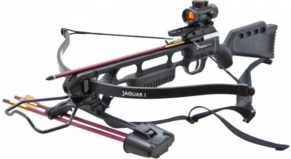 Tradiční tělo kuší Jaguar I se vyrábí z kovu a polymeru. Standardní mířidla a muška s hledím napomáhají s mířením na cíl. Dostřel kuše dosahu...