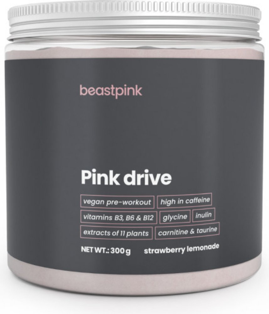 Pink Drive je komplexní předtréninkovka pro ženy, které na sobě makají. Obsahuje kofein pro podporu vytrvalostního výkonu, spalovač tuku synefrin, l-karnitin, vybrané vitamíny a další funkční látky. Je ve formě dobře rozpustného prášku s lahodnou příchutí, kterou si zamilujete. Pink Drive je nakopávač s kofeinem pro podporu bdělosti, koncentrace a vytrvalostního výkonu