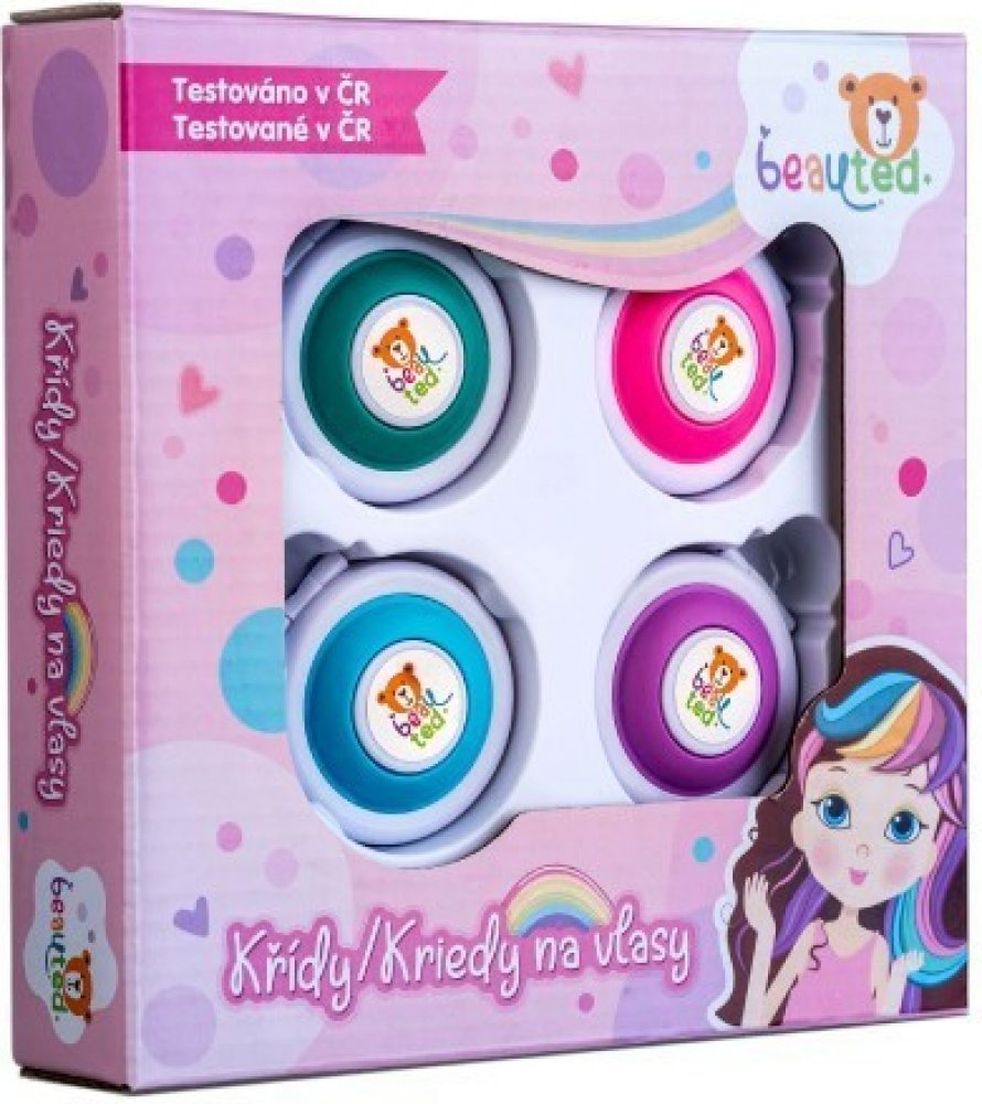 Speciální barevné křídy na vlasy, díky nimž si děti mohou nabarvit vlasy dle vlastní fantazie. Křídy se snadno umyjí šamponem. Vítejte v hravém a bezpečném světě kosmetiky značky beauted. Malé holčičky se začínají seznamovat se světem krásy již od raného dětství a brzy je zajímá vše, co jejich maminky používají. Značka beauted je k objevování kosmetiky jako stvořená. Produkty této řady jsou navrženy tak, aby byly hlavně bezpečné, ale také hravé a inspirativní. Podpoří kreativitu a představivost, umožní rozvíjet a formovat smysl pro estetiku a krásu. Značka beauted je laboratorně testovaná v České republice. Kontrola těžkých kovů je prověřena státním zdravotní ústavem, plastové obaly jsou testovaných v ITC Zlín. Podklady pro evropský portál notifikace přípravků /CPNP/ jsourovněž zpracovány laboratoří v ČR. Certifikace v České republice zaručuje kvalitu a bezpečnost, aby rodiče mohli mít jistotu, že produkty značky beauted jsou kvalitní, bezpečné a šetrné k dětské pokožce.