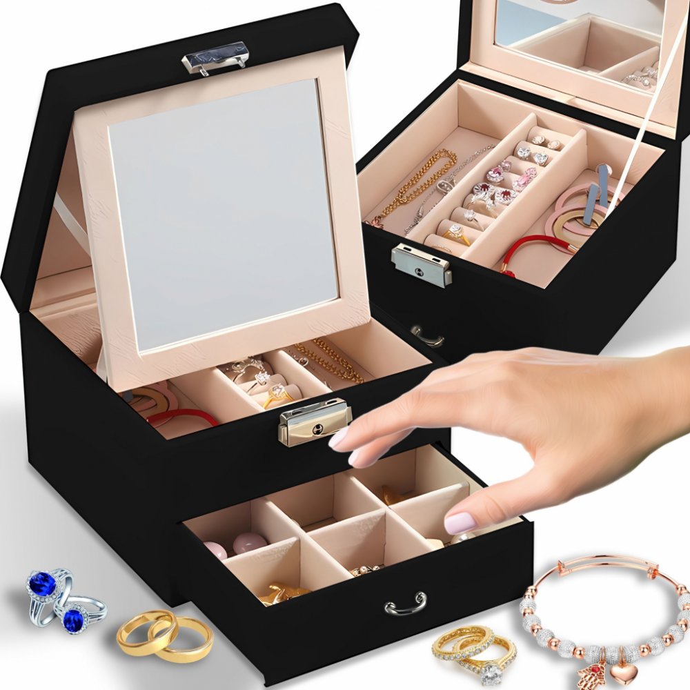 Beautylushh luxusní šperkovnice se zrcadlem 8896 černá