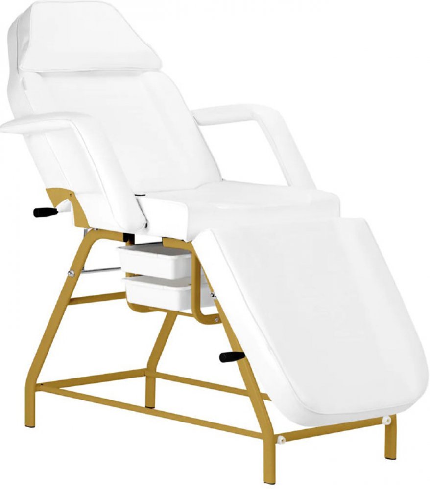 Kosmetické křeslo BeautyOne 557G White s praktickými zásuvkami je ideální na kosmetické ošetření, depilaci, líčení, vizáže a masáže.