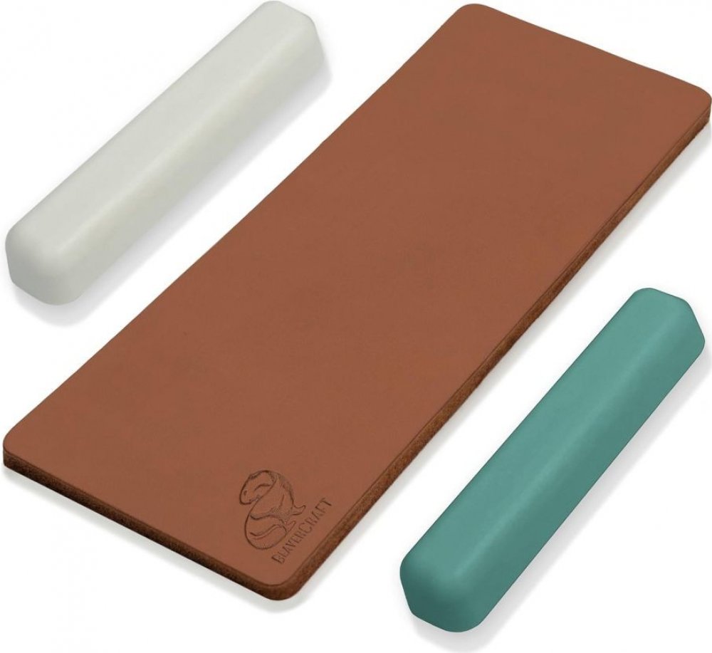 Beavercraft Leather Strop for Honing with two Polishing Compounds Green, White