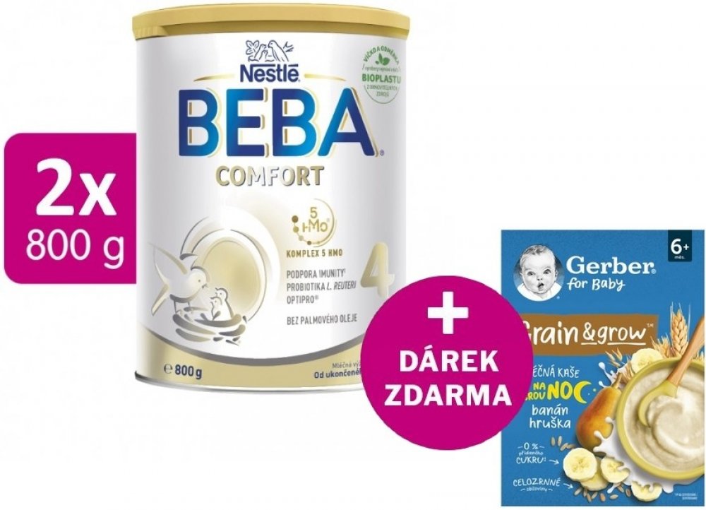 BEBA COMFORT 4 5 HMO 2 x 800 g + Gerber kaše banán a hruška 200 g