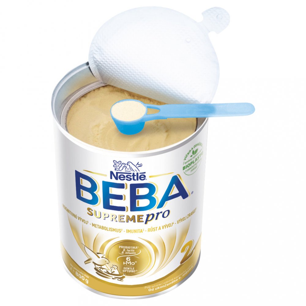 BEBA SUPREMEpro 2, 6 HMO je instantní pokračovací kojenecká mléčná výživa s bakteriemi mléčného kvašení B. lactis a B. infantis a upravenou bílkovinou od ukončeného 6. měsíce. Bez palmového a rybího oleje.