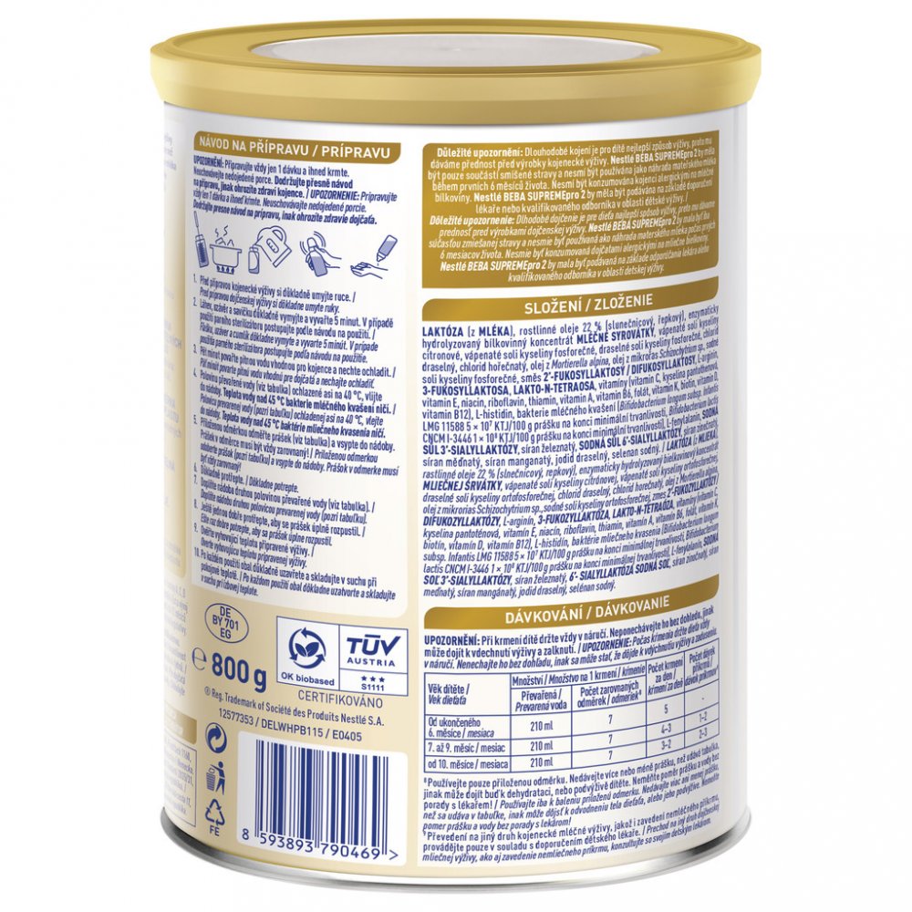 Dlouhodobé kojení je pro dítě nejlepší způsob výživy, proto mu dáváme přednost před výrobky kojenecké výživy. BEBA SUPREMEpro 2 6HMO by měla být pouze součástí smíšené stravy a nesmí být používána jako náhrada mateřského mléka během prvních 6 měsíců života. BEBA SUPREMEpro 2, 6 HM, by měla být podávána na základě doporučení lékaře nebo kvalifikovaného odborníka v oblasti dětské výživy.