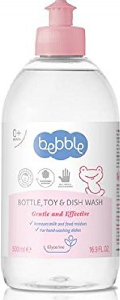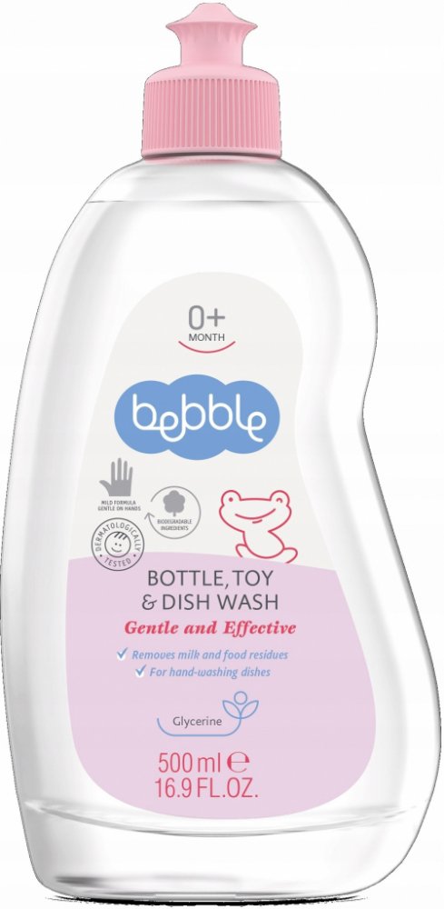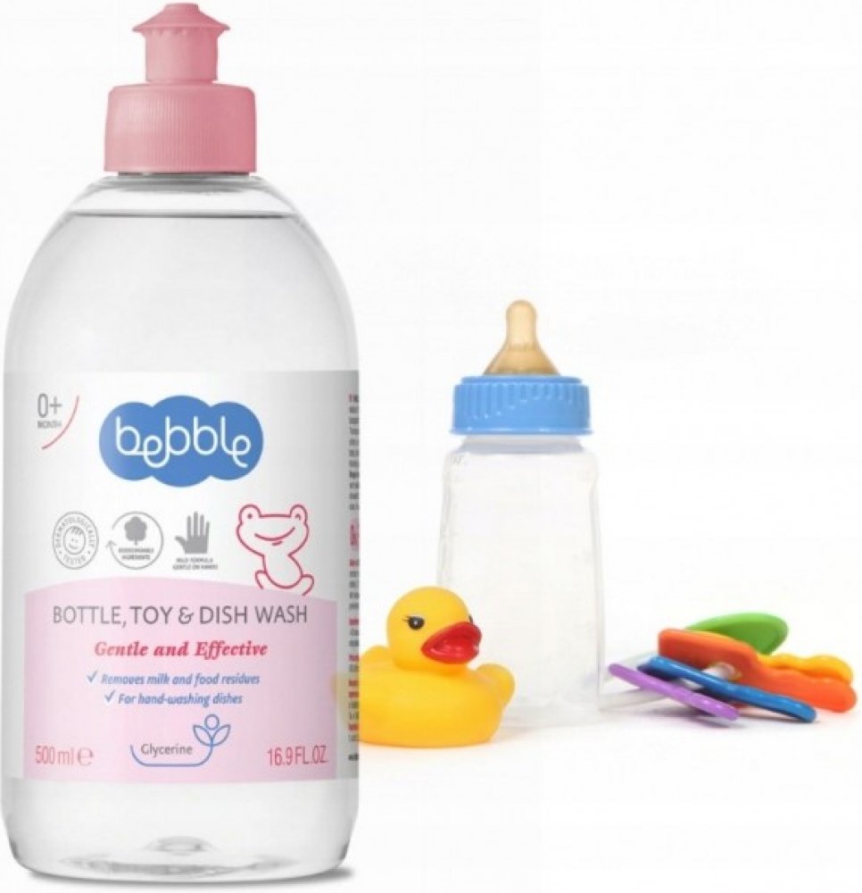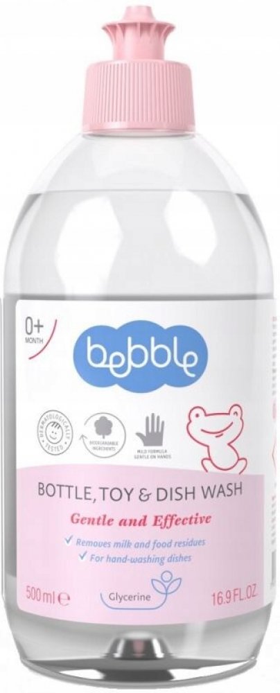 Dětské lahvičky, hračky a doplňky umyjte v roztoku 2-3 ml Bebble lahvičky, hračky a prostředku na mytí nádobí v 1 litru teplé vody. Silně znečištěné nádobí nebo předměty se zaschlým jídlem nebo zbytky mléka lze do takového roztoku nejprve namočit. Po umytí vše důkladně opláchněte čistou vodou.