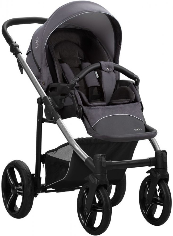 Lehký sportovní kočárek s otočnou sportovní sedačkou . Moderní lehká hliníková konstrukce s předními otočnými koly zajistí snadnou manipulace s kočárkem . Možnost osadit na podvozek kočárku autosedačku Ramati 0-13 kg , Maxi Cosi 0-13 kg , Romer nebo Cybex ( nejsou v ceně, dokupují se samostatně) . Kočárek je vhodný od 6 měsíců do 3 let ( nebo 15 kg ). S použitím autosedačky je kočárek využitelný již od narození . Kočárek je možné složit i se sportovní sedačkou . - Lehká hliníková konstrukce , - Prostorný nákupní koš , - Nízkoprofilové nafukovací kola s ložiskovými pouzdry s funkcí SAS - systém vysoké absorpci otřesů eliminuje otřes kol - Funkce DMS - paměť směru jízdy - udrží kolo v poloze , v jaké bylo před ztrátou kontaktu s povrchem , - Přední otočná s vysokou lehkostí ovládání , možnost fixace v nerovném terénu , - Výškově nastavitelná rukojeť potažená kůži ( 76-110 cm ), - Sportovní sedačka otočná ve směru i protisměru jízdy , - Polohovatelná opěrka až do úplného lehu , - Polohovatelná opěrka nohou , - Pětibodové bezpečnostní pásy s měkkými chrániči , - Odnímatelné bezpečnostní madlo . Barva konstrukce : Měděná, zlatá, stříbrná V ceně : - Podvozek kočárku s koly , - Sportovní sedačka se stříškou a nánožníkem . Rozměry : Rozměr rozloženého kočárku : 112x92x61 cm , Rozměr složené konstrukce: 82x30 cm , Rozměr sedací části : 27x31 cm , Délka opěrky zad : 52 cm , Celková délka lůžka : 101 cm , Váha konstrukce s koly : 8,3 kg , Váha sportovní sedačky : 3,9 kg .