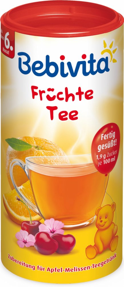 Podrobnosti o produktu E1788 Bebivita Instantní Ovocný čaj slouží k doplnění tekutin v období přikrmování a je vhodný pro děti od 6. měsíce (od ukončeného 5. měsíce).