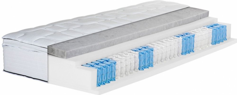 BeCo 7zónová matrace Boxspring Royal Flex KS Kvalitní matrace s jádrem z taštičkových pružin se zesílenými bočními hranami pro snadnější uléhání a vstávání Kryt matrace z komfortní pěny Hydrux®, který lze díky zipu sejmout Podpora a uvolnění tlaku, odlehčení v oblasti ramen a celkové uvolnění svalů Luxusní XXL matrace je vhodná jako dvojitá matrace, matrace pro partnery nebo jako matrace do postelí typu Boxspring Dvojitý elastický látkový potah regulující vlhkost je prošívaný klimatickými vlákny Dobré klima při spánku a vyrovnávání teploty díky tencelu v potahu Ocenění časopisu Haus & Garten jako "velmi dobrý" (6/2018) Cca 480 pružin při rozměrech 100 x 200 cm Potah lze zipem rozdělit na dvě části a prát při teplotě do 60 °C Typ jádra: taštičkový Konstrukce jádra: cca 12cm taštičkové jádro se 7 zónami + cca 3cm podložka z komfortní pěny po obou stranách + 5cm kryt z Hydrux pěny Kryt jádra: komfortní pěna, Hydrux pěna Výška krytu jádra: cca 3 cm komfortní pěna, cca 5 cm Hydrux pěna Hustota krytu jádra: Hydrux pěna: cca 35 g/m2, komfortní pěna: cca 30 g/m2 Celková výška: cca 19 cm Tvrdost: H2, H3, H4 Doporučená tvrdost: H2 (střední): cca 45-80 kg; H3 (tvrdá): cca 75-95 kg; H4 (extra tvrdá): cca 90-130 kg Proč 7 zón? Rozdělení matrace na zóny přináší lepší přizpůsobení tvaru a rozložení hmotnosti lidského těla. Základem je tvrdší nastavení tam, kde je potřeba podepřít nejvyšší hmotnost. Sedmizónové provedení nejlépe kopíruje anatomii těla. Používá se především u pěnových matrací, jejichž obecnou výhodou je poddajnost a vysoký komfort. Materiál Potah: 56 % polyester, 44 % tencel Rozměry cca 90 x 190 cm cca 80 x 200 cm cca 90 x 200 cm cca 100 x 200 cm cca 120 x 200 cm cca 140 x 200 cm cca 160 x 200 cm cca 180 x 200 cm Hmotnost cca 90 x 190 cm: cca 18 kg cca 80 x 200 cm: cca 18 kg cca 90 x 200 cm: cca 19 kg cca 100 x 200 cm: cca 20 kg cca 120 x 200 cm: cca 24 kg cca 140 x 200 cm: cca 28 kg cca 160 x 200 cm: cca 32 kg cca 180 x 200 cm: cca 36 kg
