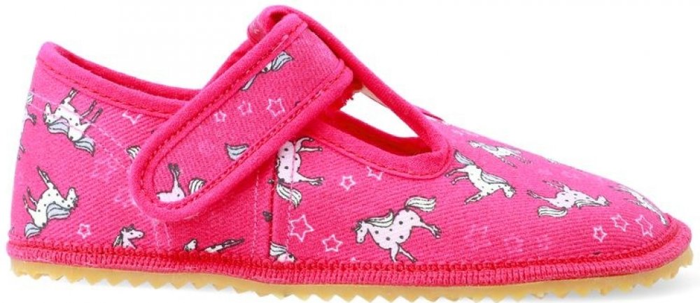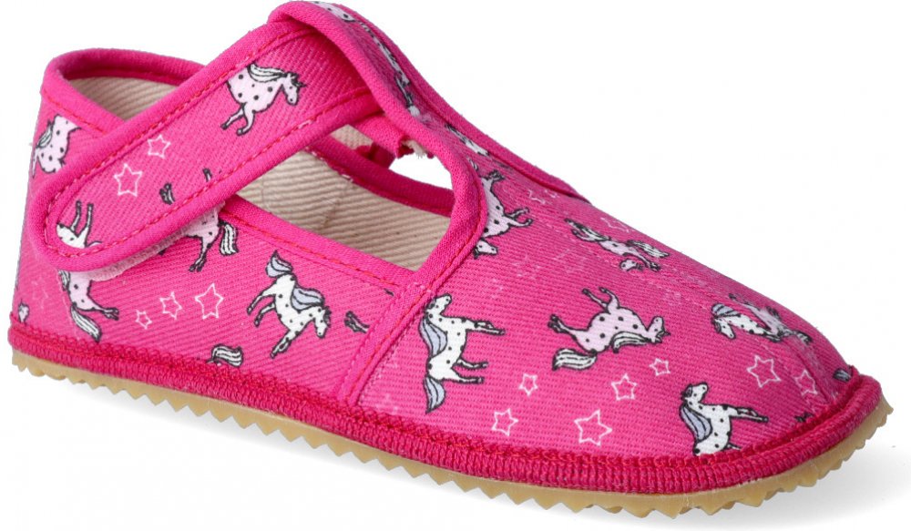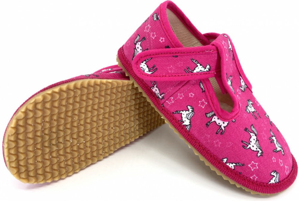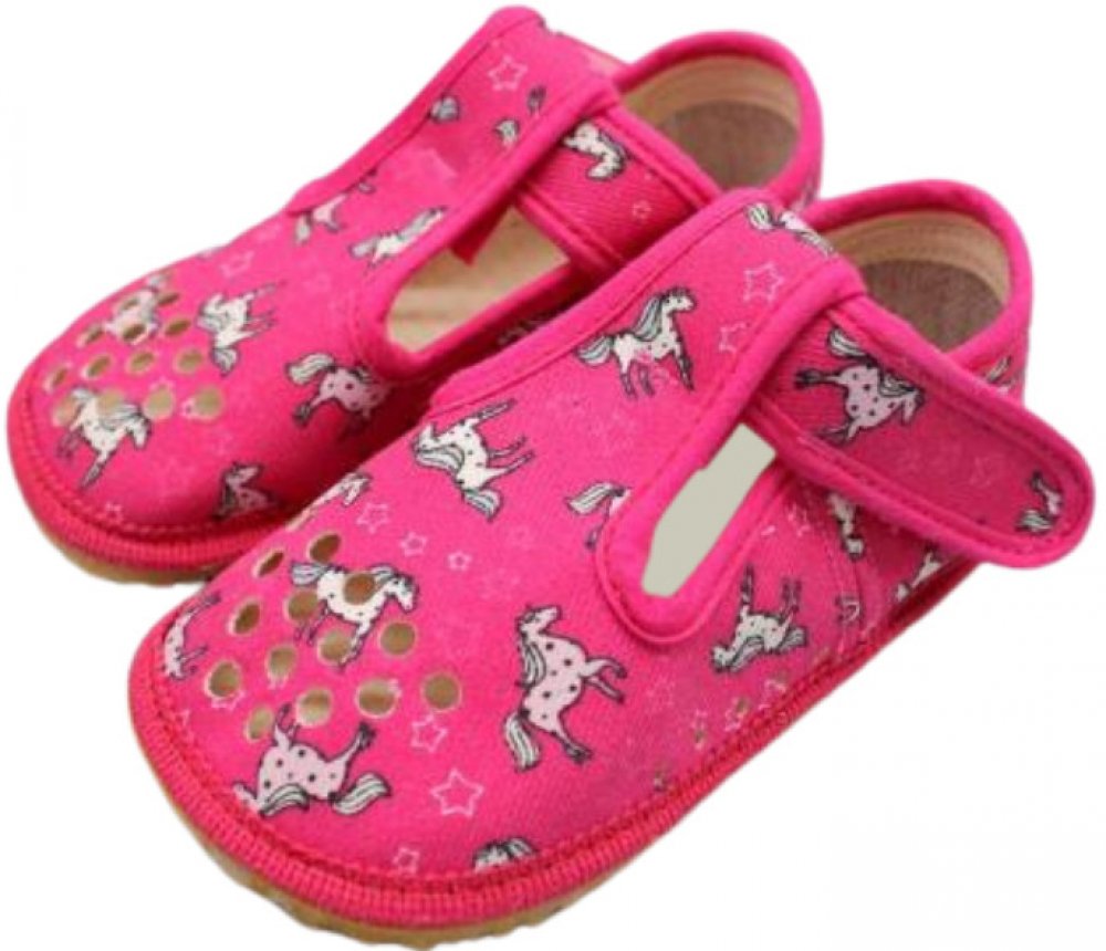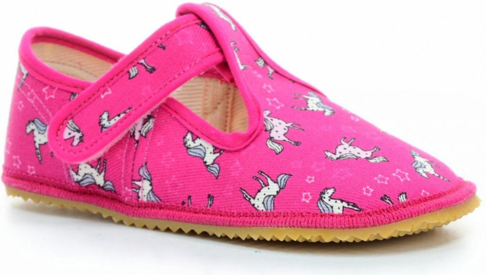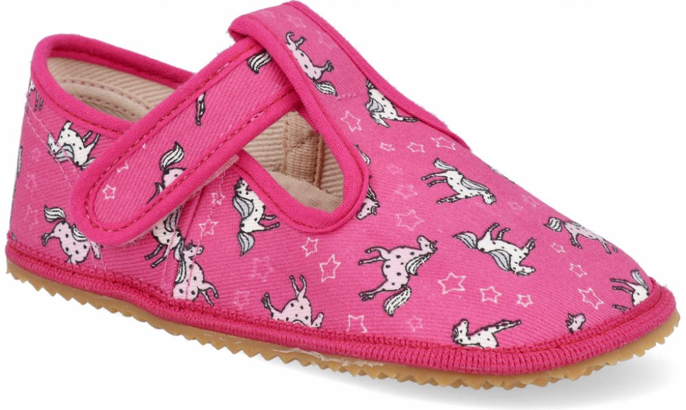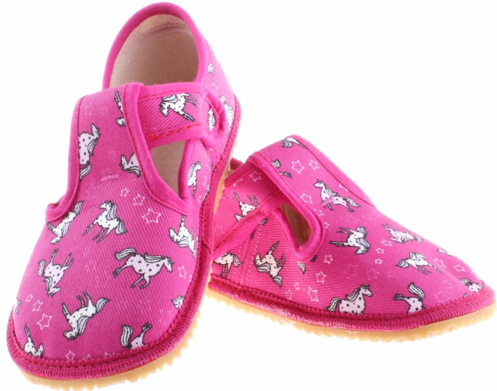 Beda růžová na suchý zip unisex bačkory textilie Jednorožci