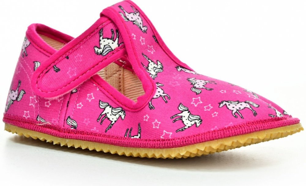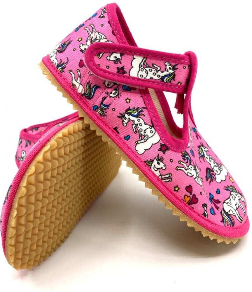 Beda růžová na suchý zip unisex bačkory textilie Jednorožci