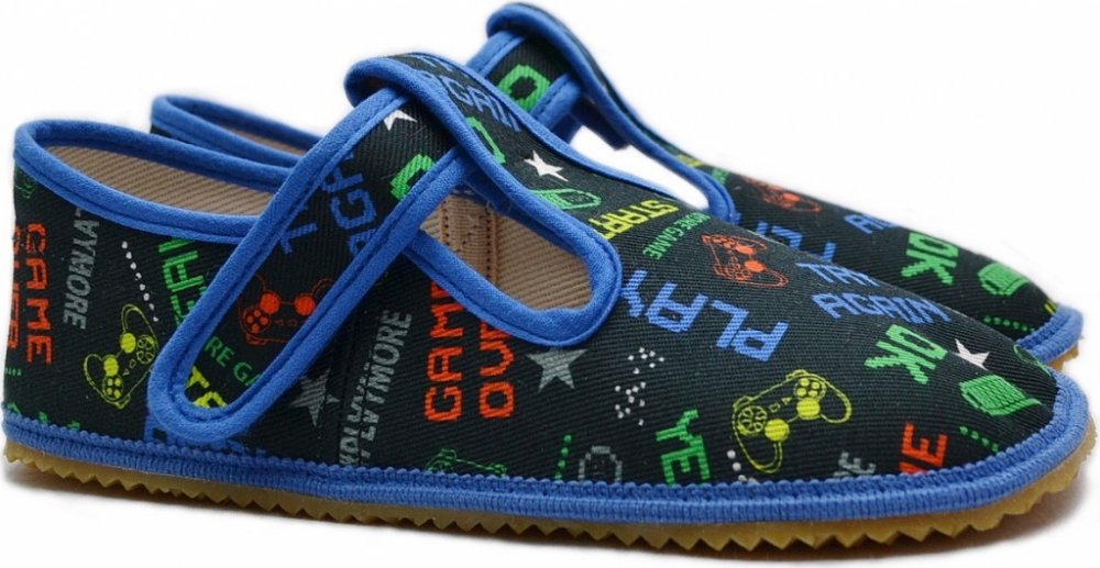 Dětské barefoot bačkory českého výrobce Beda, se zapínáním na suchý zip. Velmi lehké a flexibilní, s 2 mm tenkou podrážkou. Zpevněný opatek tzv. barefoot kompromis. Rovná, vyjímatelná stélka bez podpory klenby.
