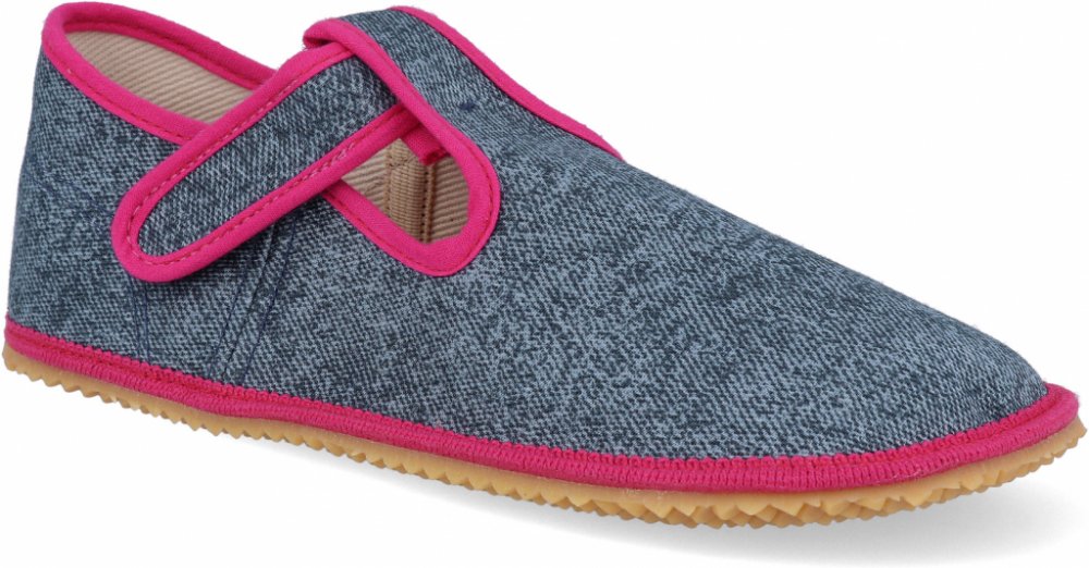 Beda Barefoot dětské přezůvky Playful BFN Denim pink šedé/růžové