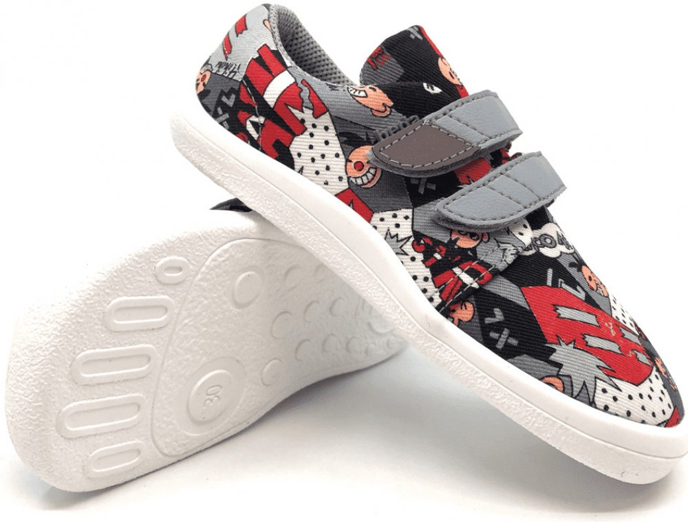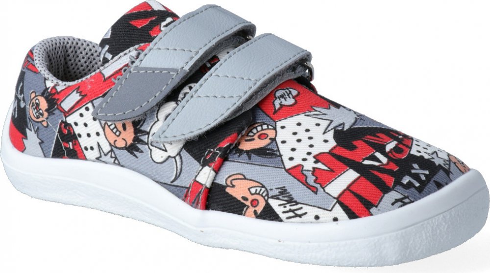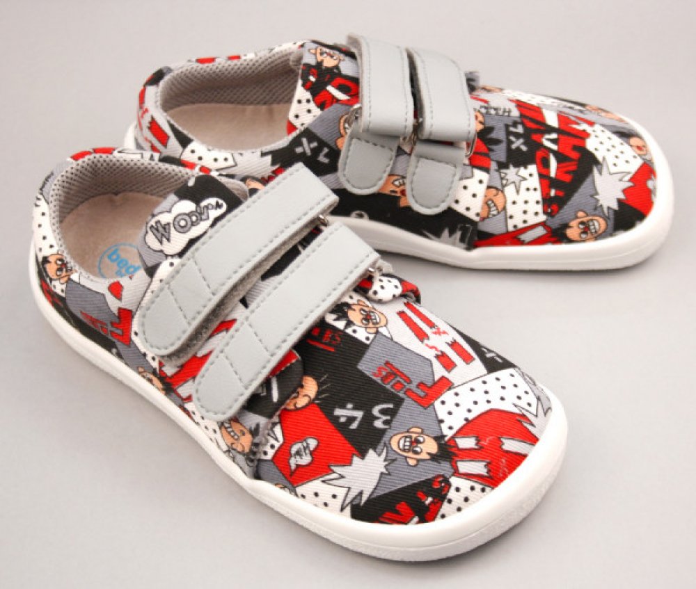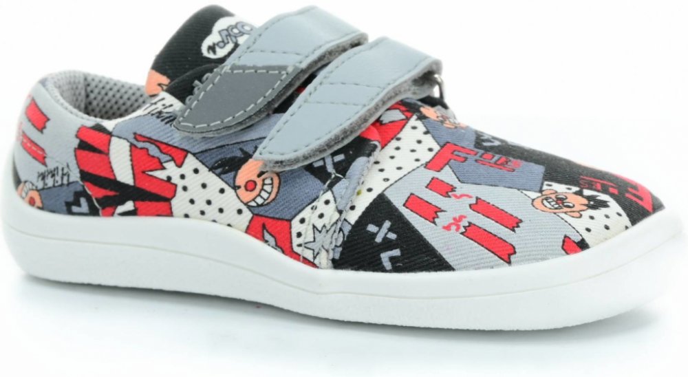 Beda barefoot textilie volnočasové pro kluky celoroční Léto na suchý zip nízké šedá