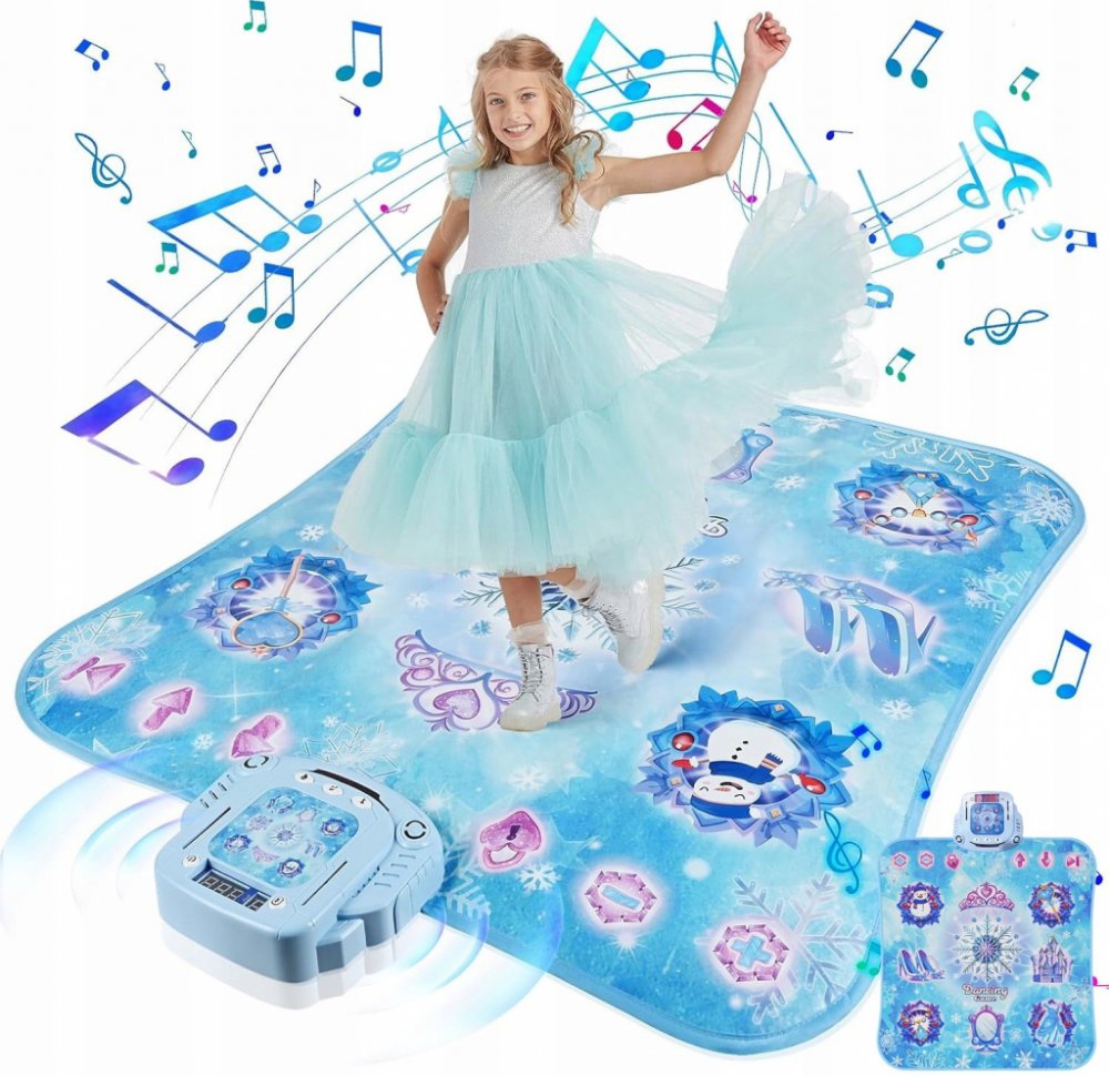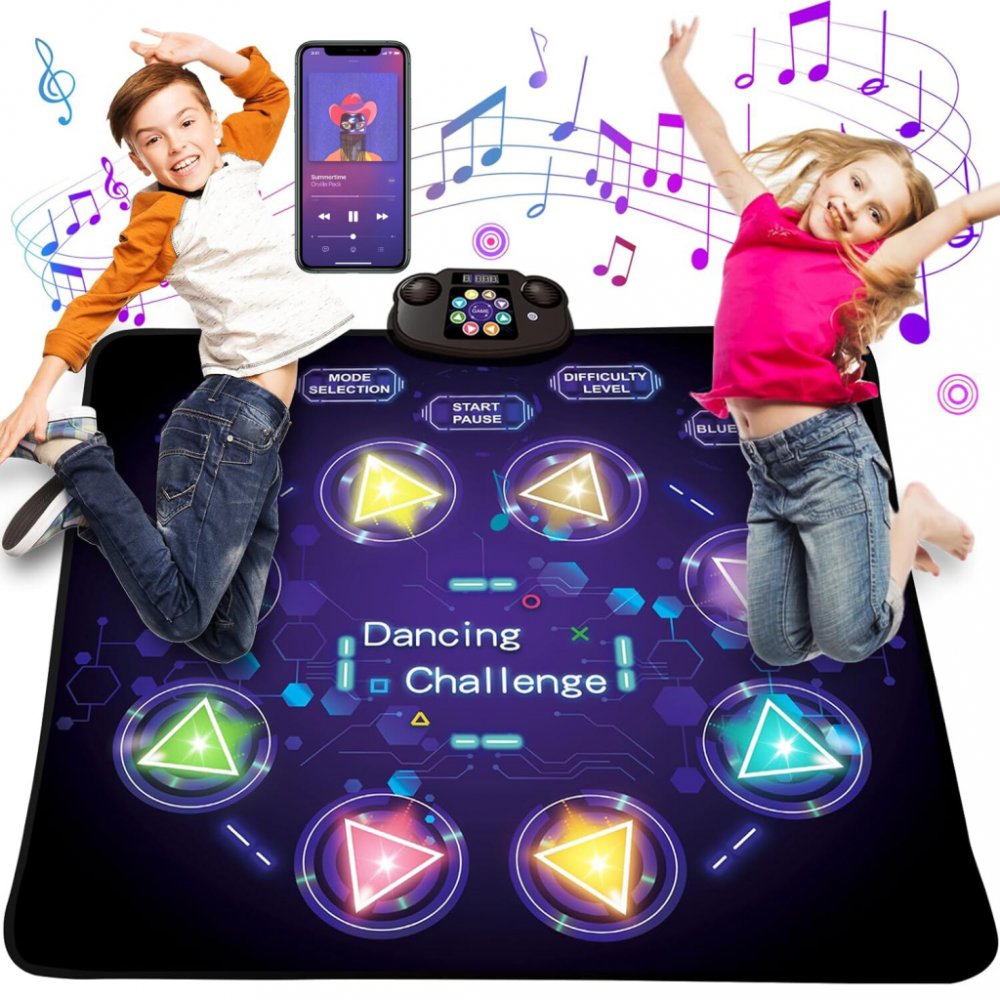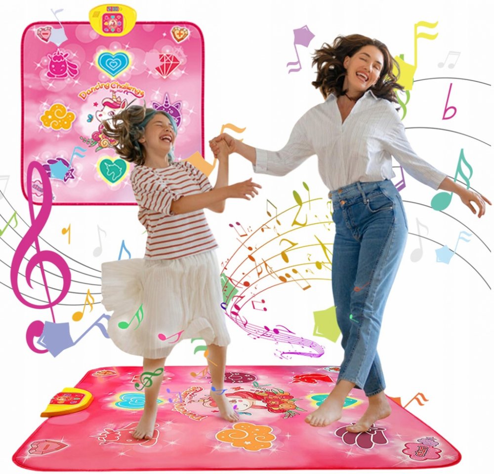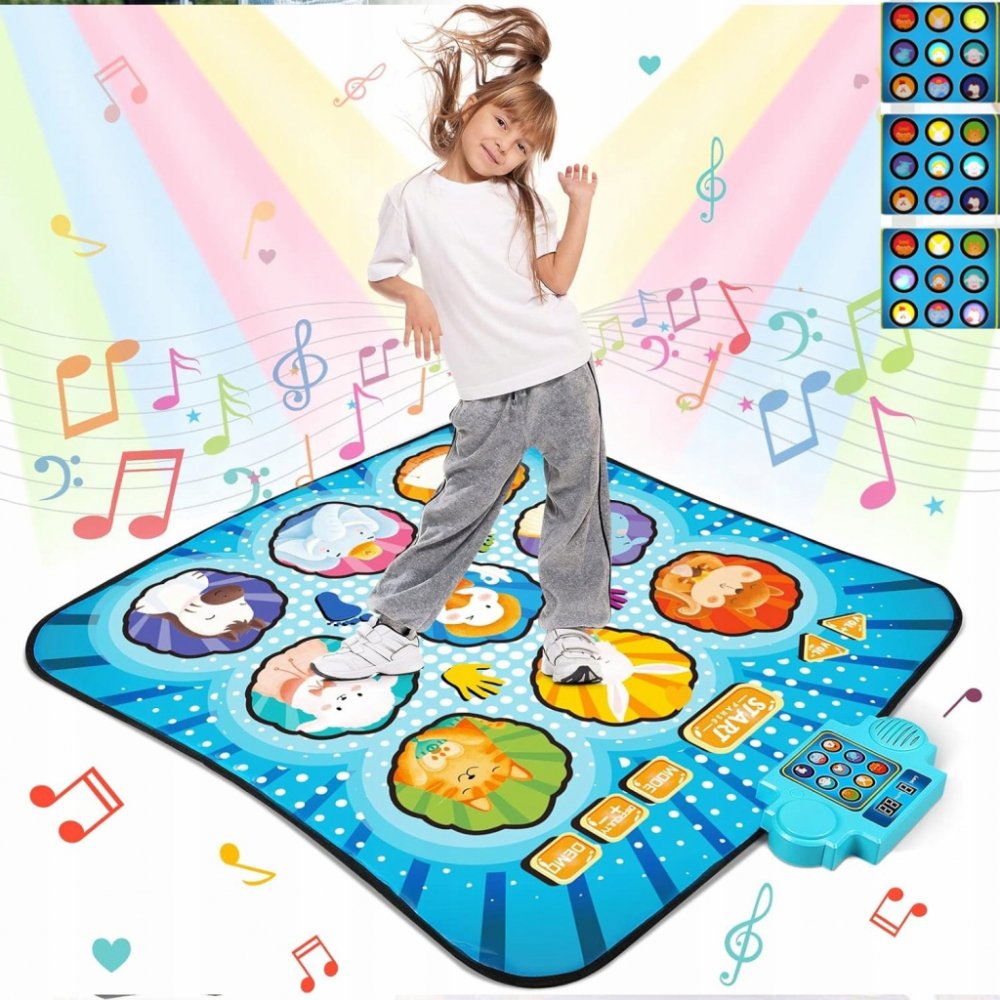 Taneční hrací podložka s elektronickou hudbou má vestavěné demo skladby, nastavitelnou hlasitost a LED indikátory. Je odolná, skládací, snadno se přenáší a nezabírá místo, takže je vhodná pro hry uvnitř i venku. Má voděodolnou a protiskluzovou konstrukci, snadno se čistí a je bezpečný pro děti.
