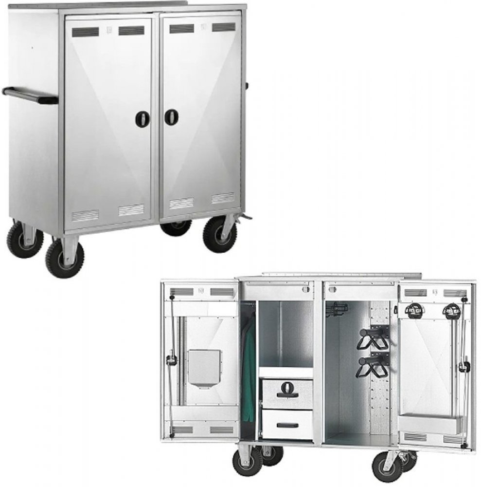 Propracovaný, vysoce kvalitní transportní box na 2 sedla, s věšáky na uzdečky/ohlávky a přihrádkami na další nezbytnosti. Box lze uzamknout. Na obou stranách jsou madla pro snadnou manipulaci, velká kolečka velmi dobře jezdí a lze je zabrzdit. Rozměry cca: š: 122cm, v: 140cm, h: 60cm UPOZORNĚNÍ: Při objednávce přes e-shop NELZE ZASLAT - pouze osobní odběr!